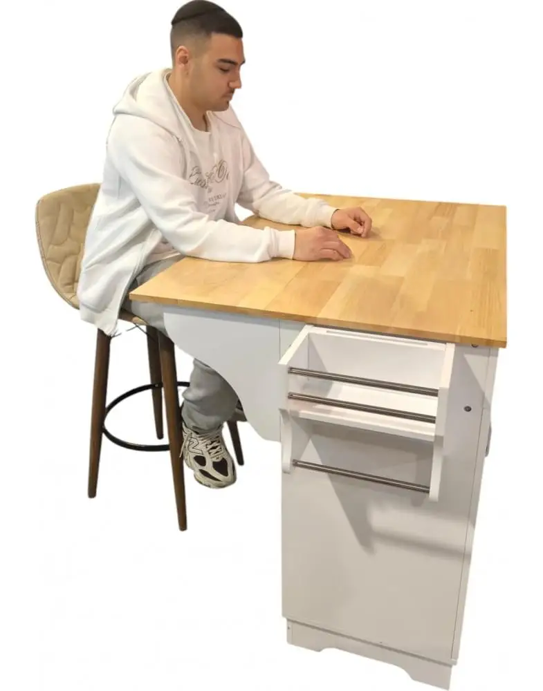 אי מטבח מודרני ורב-תכליתי דגם Cuba המשלב עיצוב כפרי עם פונקציונליות גבוהה. כולל משטח עבודה בגימור טבעי, שלוש דלתות אחסון, שתי מגירות וידיות מתכת אלגנטיות – פתרון מושלם לשדרוג כל מטבח.