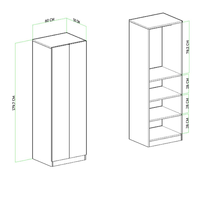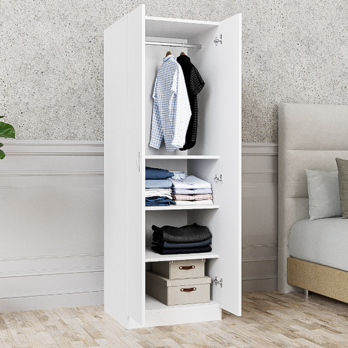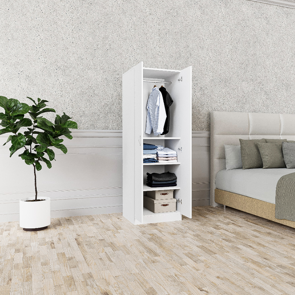 ארון איכותי, בעל 2 דלתות בשילוב שלושה תאי אחסון לארגון ואחסון בגדים וציוד בצורה מסודרת, בחלק העליון ישנו מוט שאפשר לתלות עליו בגדים ולשמור עליהם בצורה נגישה וקלה לשימוש ובעיצוב שיתאים לכל חלל ולכל מטרה.