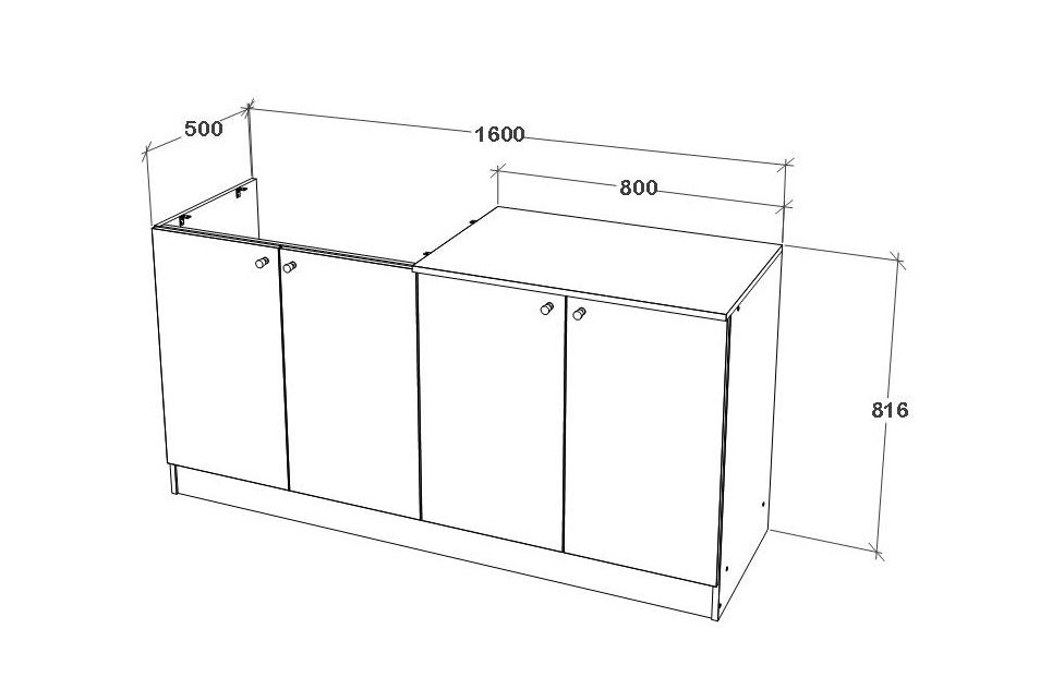 * ארונות המטבח יושבים על הרצפה אך ניתן להגביהם על ידי רגליות פלסטיק קטנות המסופקות עם המוצר.