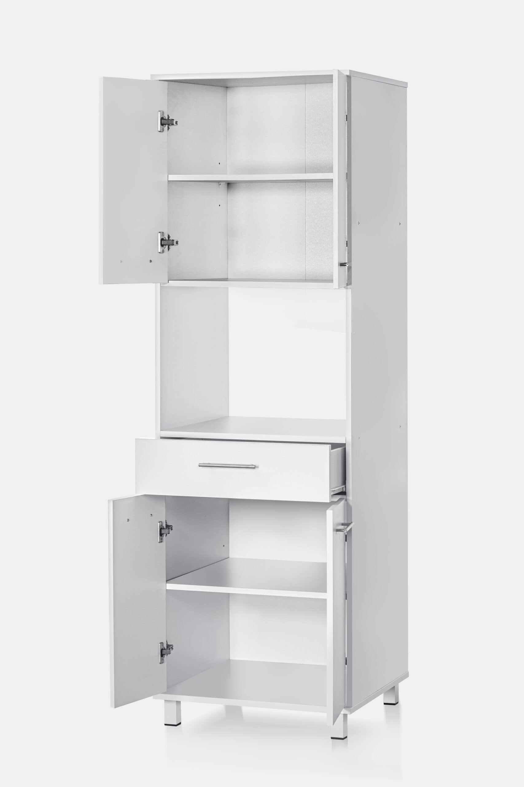 ארון מיקרוגל בעיצוב חדשני ומהודר בעל מקום רב לאחסון הכולל 4 דלתות ומגירה נשלפת, עשוי סיבית מצופה מלמין. לארון במה מוגבהת מרגליות אלומיניום איכותיות ועמידות. משתלב בכל סביבת מטבח ומשרד.
