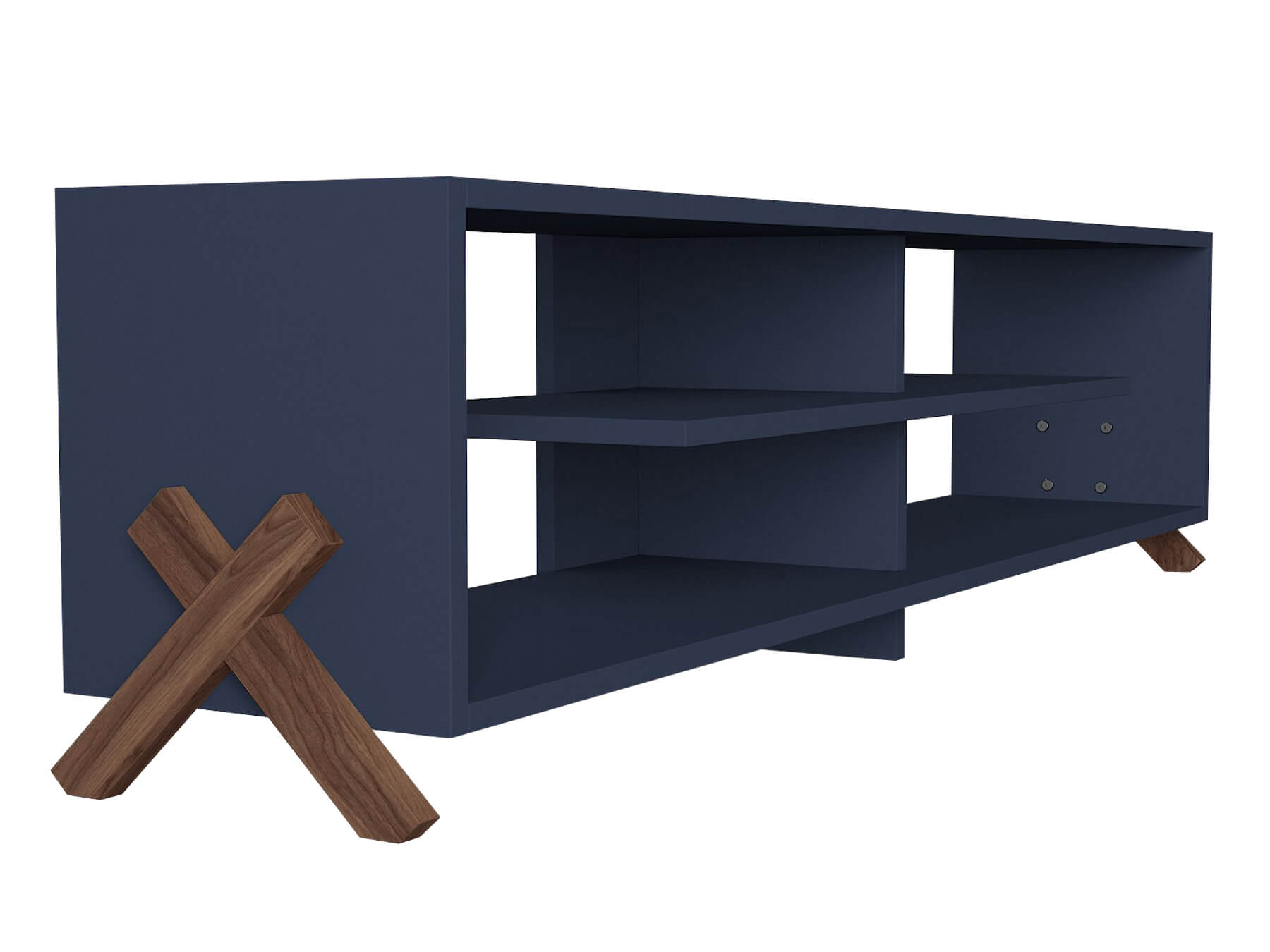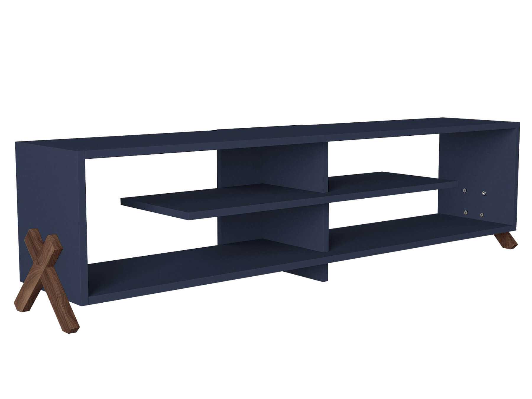 סט באנדל איכותי בעיצוב מרהיב הכולל מזנון טלוויזה בצבע כחול כהה בשילוב רגליים בצבע אגוז וכוננית מדפים מדהימה בצבע כחול כהה בשילוב רגליים בצורת איקס בצבע אגוז. סט שישדרג פלאים את מראה הסלון או כל חדר בבית או במשרד.