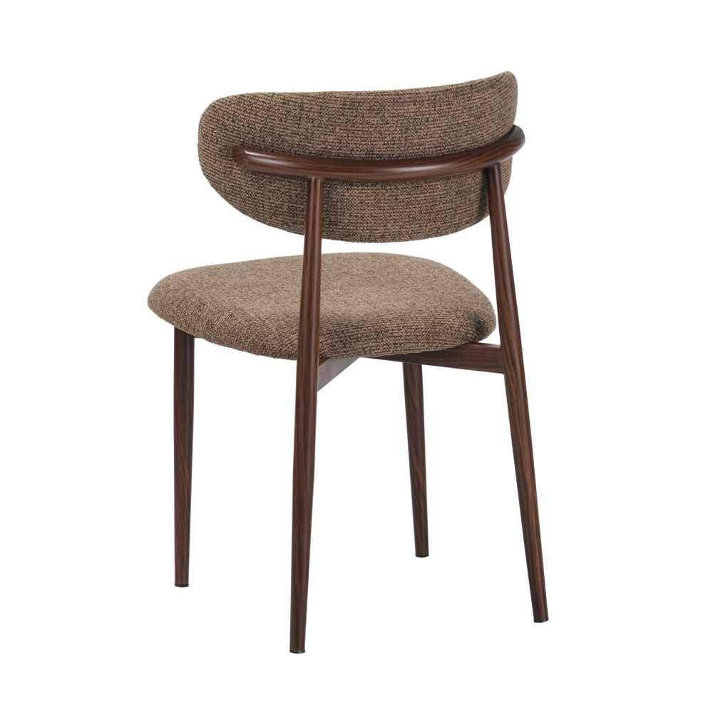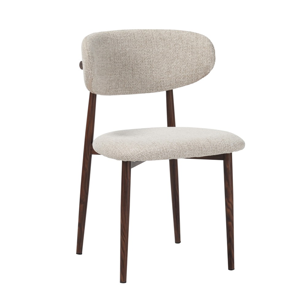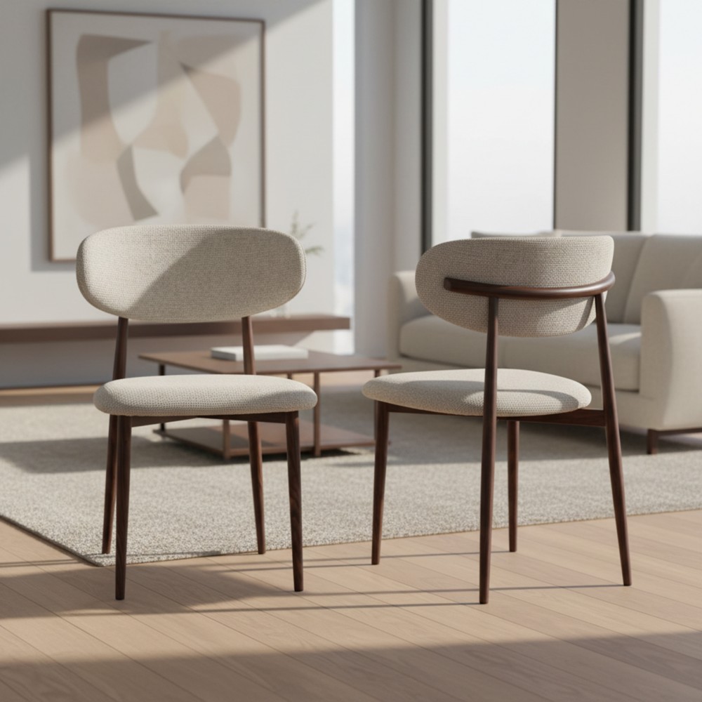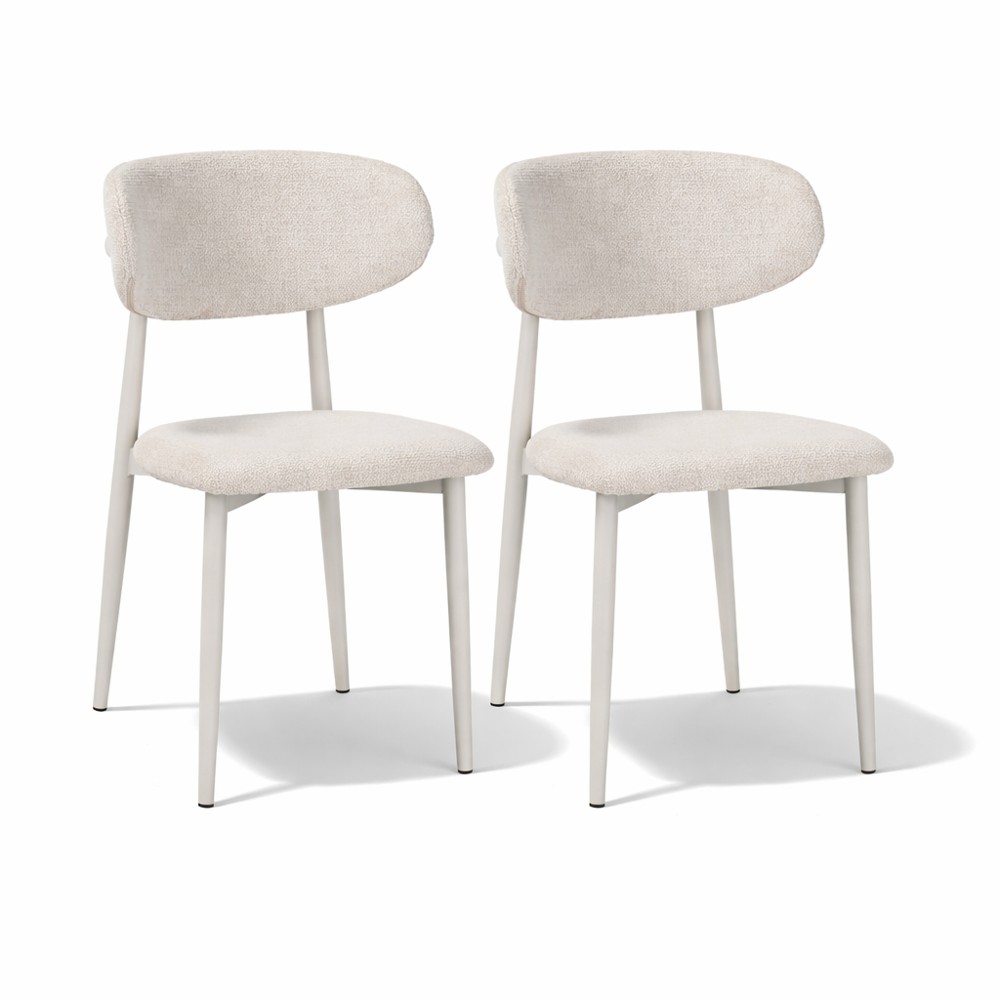 זוג כסאות לפינת אוכל בעיצוב מודרני עם ריפוד בד פוליאסטר רחיץ ונעים למגע ורגלי מתכת בגימור דמוי עץ. שילוב מדויק של נוחות יומיומית ומראה אלגנטי, זמין בשלושה גוונים לבחירה.