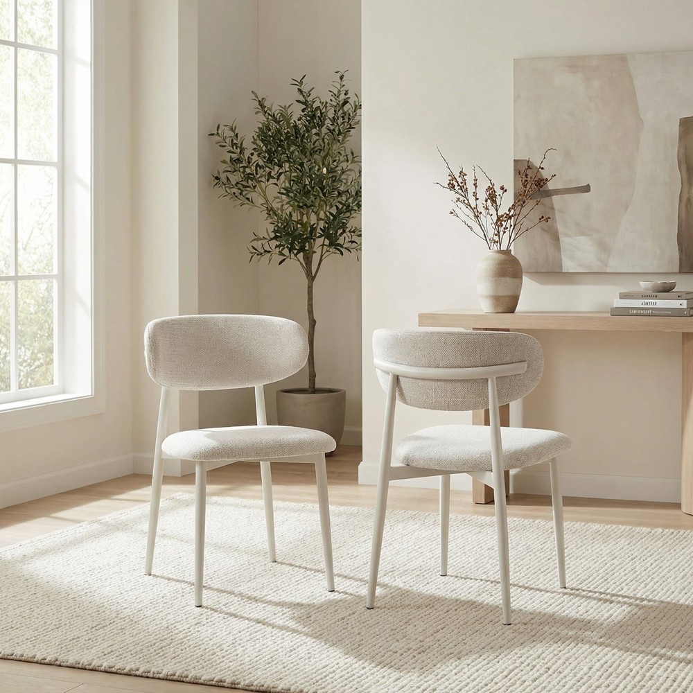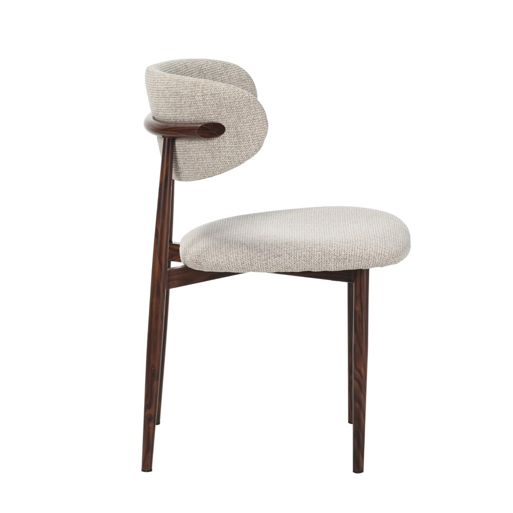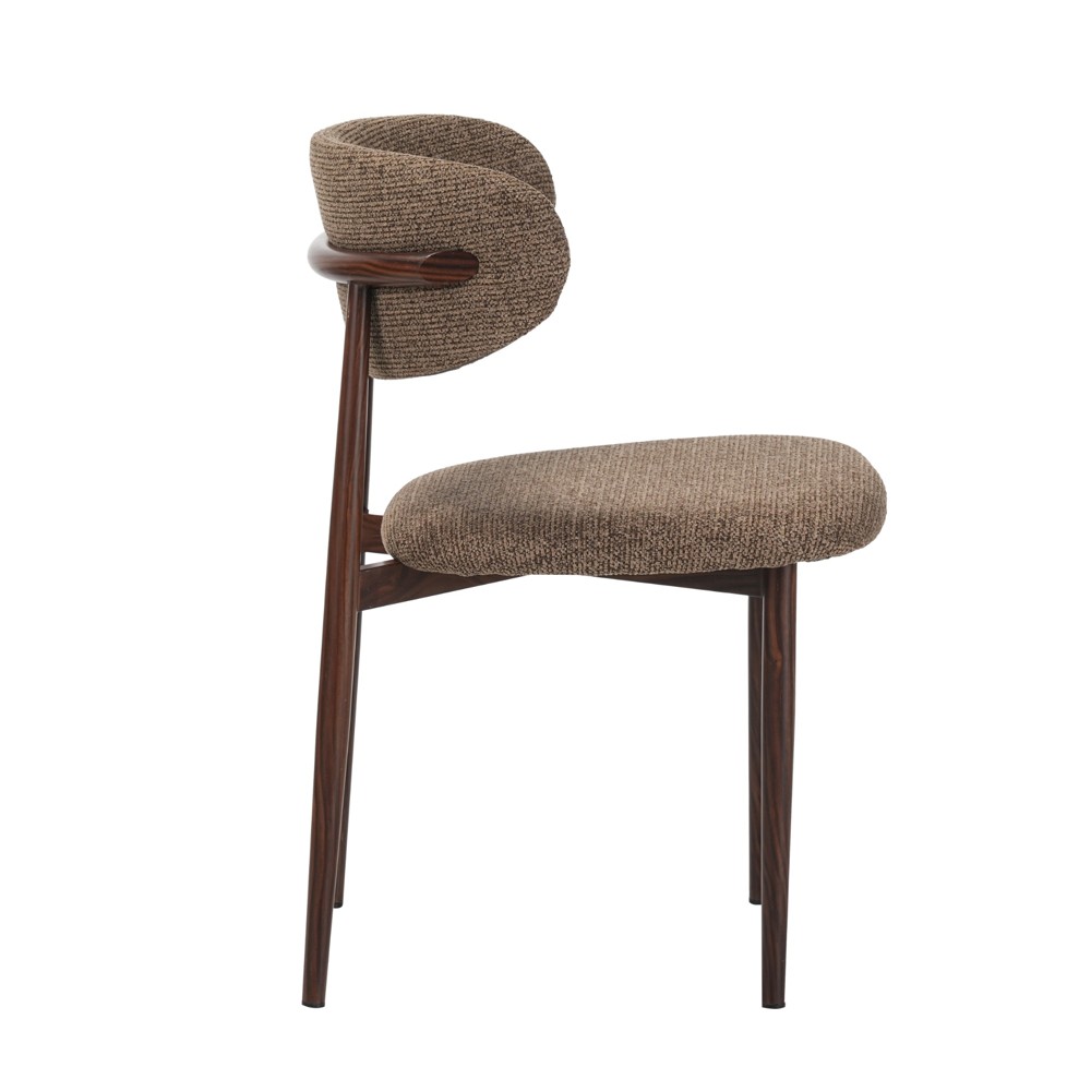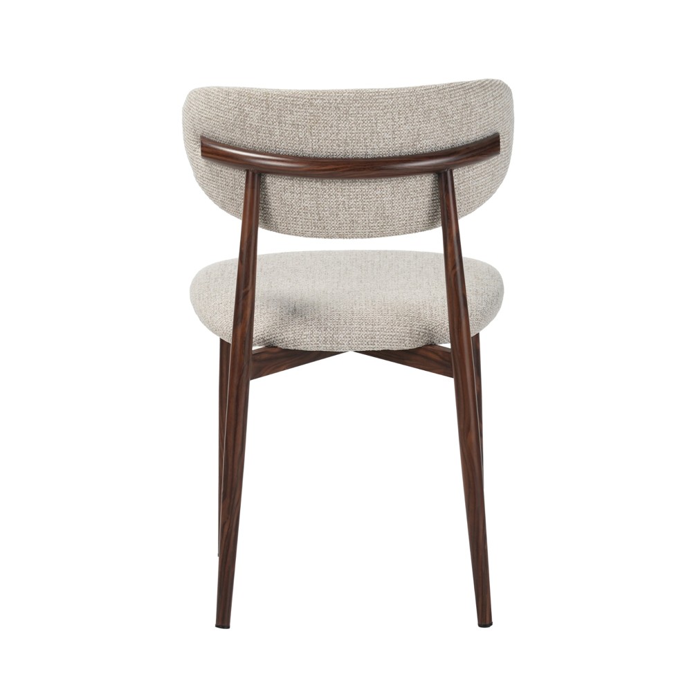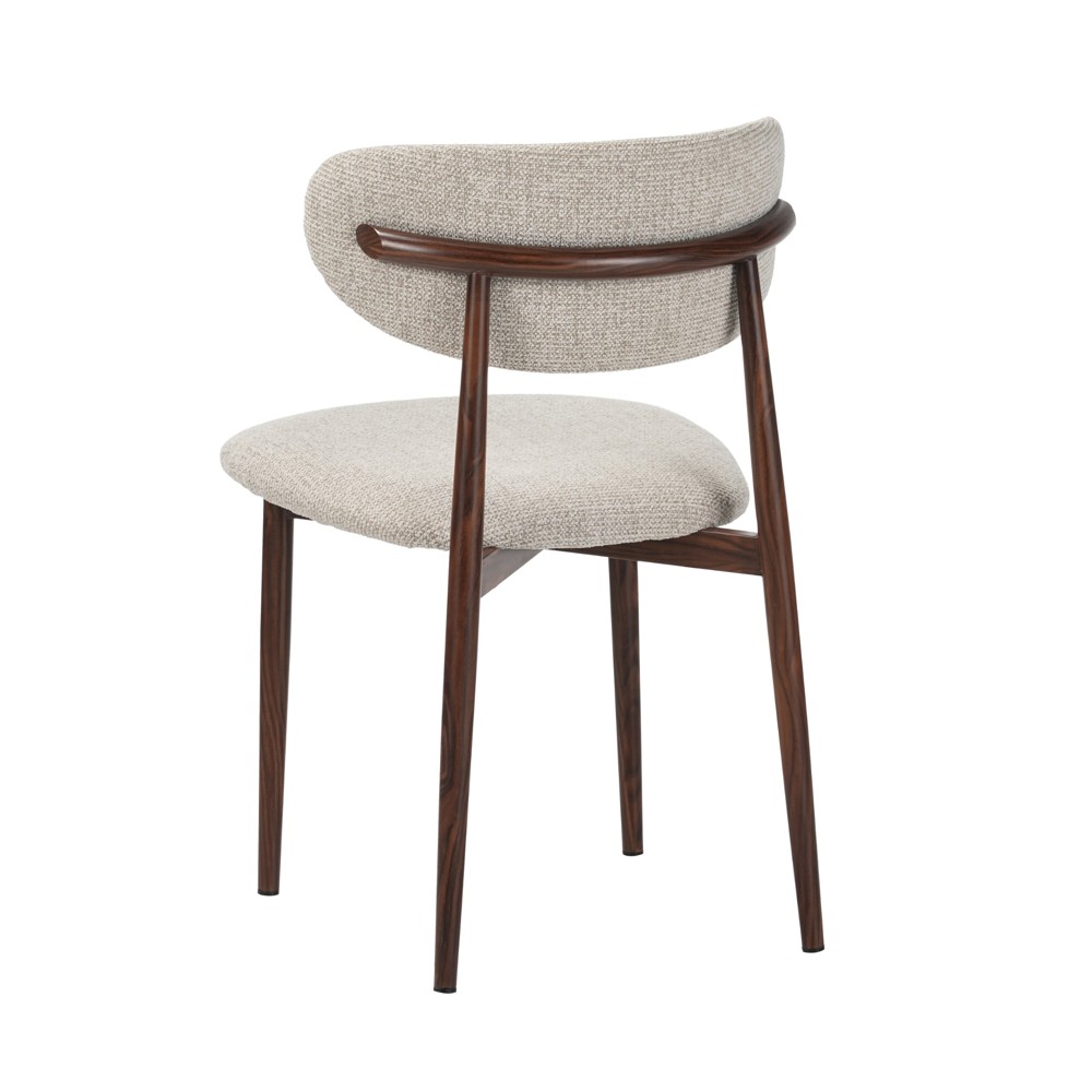 זוג כסאות לפינת אוכל בעיצוב מודרני עם ריפוד בד פוליאסטר רחיץ ונעים למגע ורגלי מתכת בגימור דמוי עץ. שילוב מדויק של נוחות יומיומית ומראה אלגנטי, זמין בשלושה גוונים לבחירה.