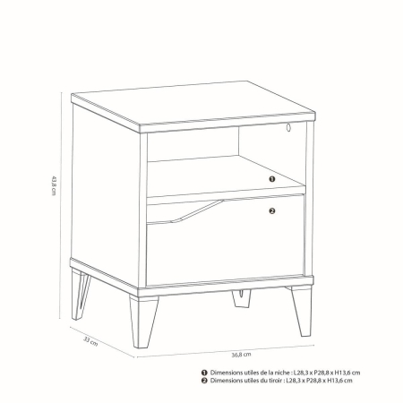 זוג שידות לילה עם מגירה ותא אחסון פתוח דגם GENIUS
