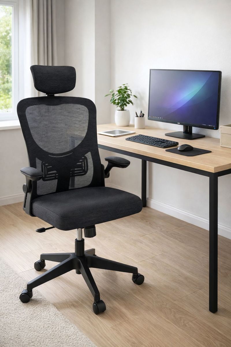 כיסא מחשב אגרונומי המיועד לישיבה ממושכת בבית או במשרד.