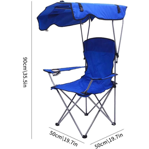 כיסא קמפינג מתקפל עם גגון צל, כולל תיק נשיאה וכיס למעמד שתייה. חזק, נוח וקל לנשיאה מתאים לחוף, קמפינג וטיולים בכל מקום.