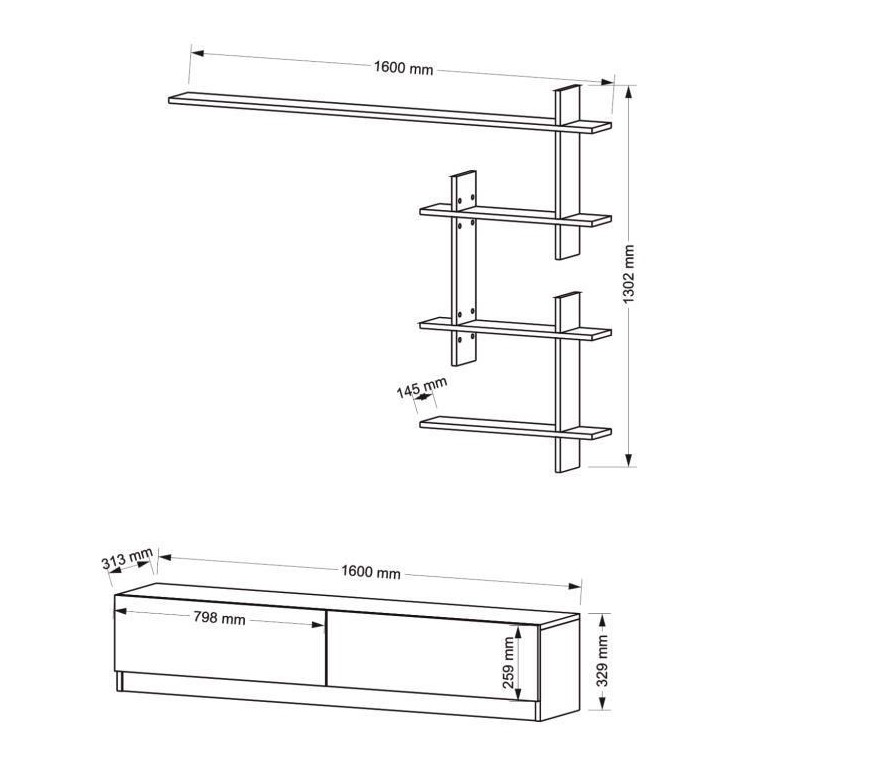 מזנון טלוויזיה עם יחידת מדפים לקיר מבית HOMAX
