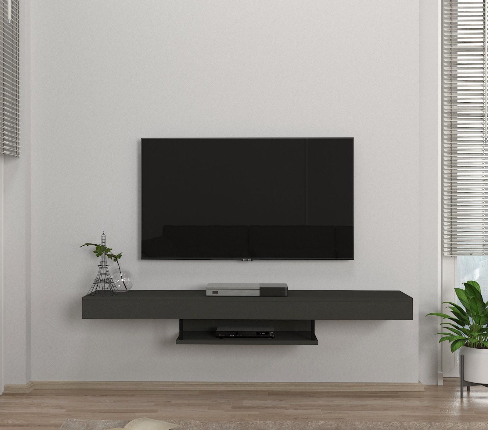 מזנון טלוויזיה מרשים בעיצוב מודרני ועכשווי במגוון צבעים לבחירה, המזנון הינו מזנון צף, ממוקם מתחת לטלוויזיה.