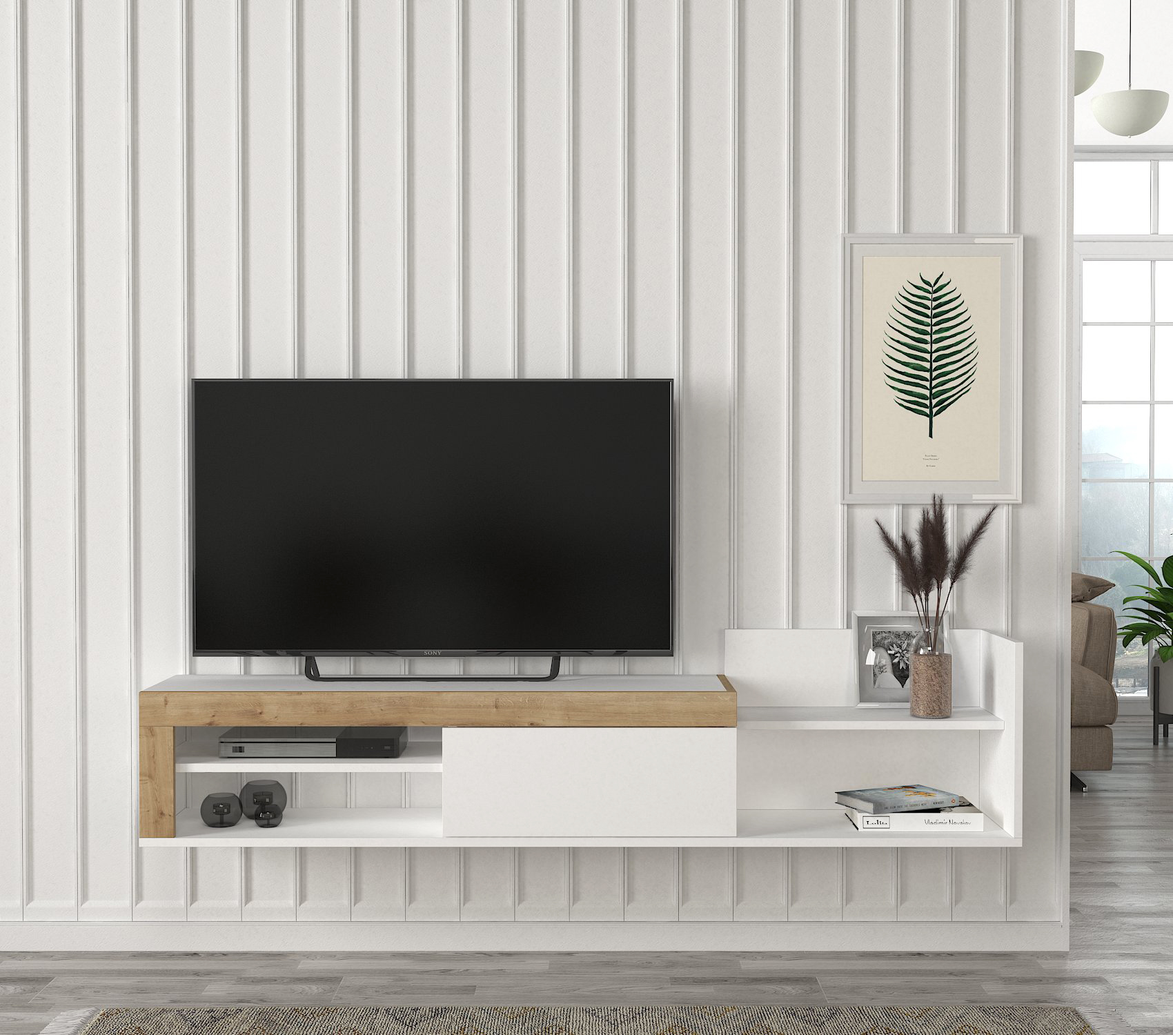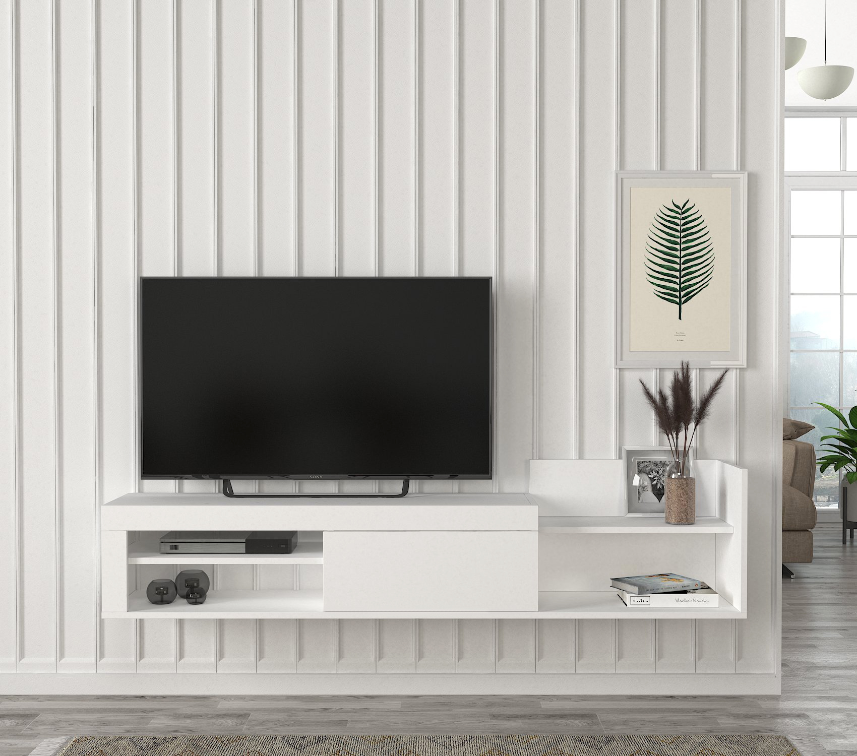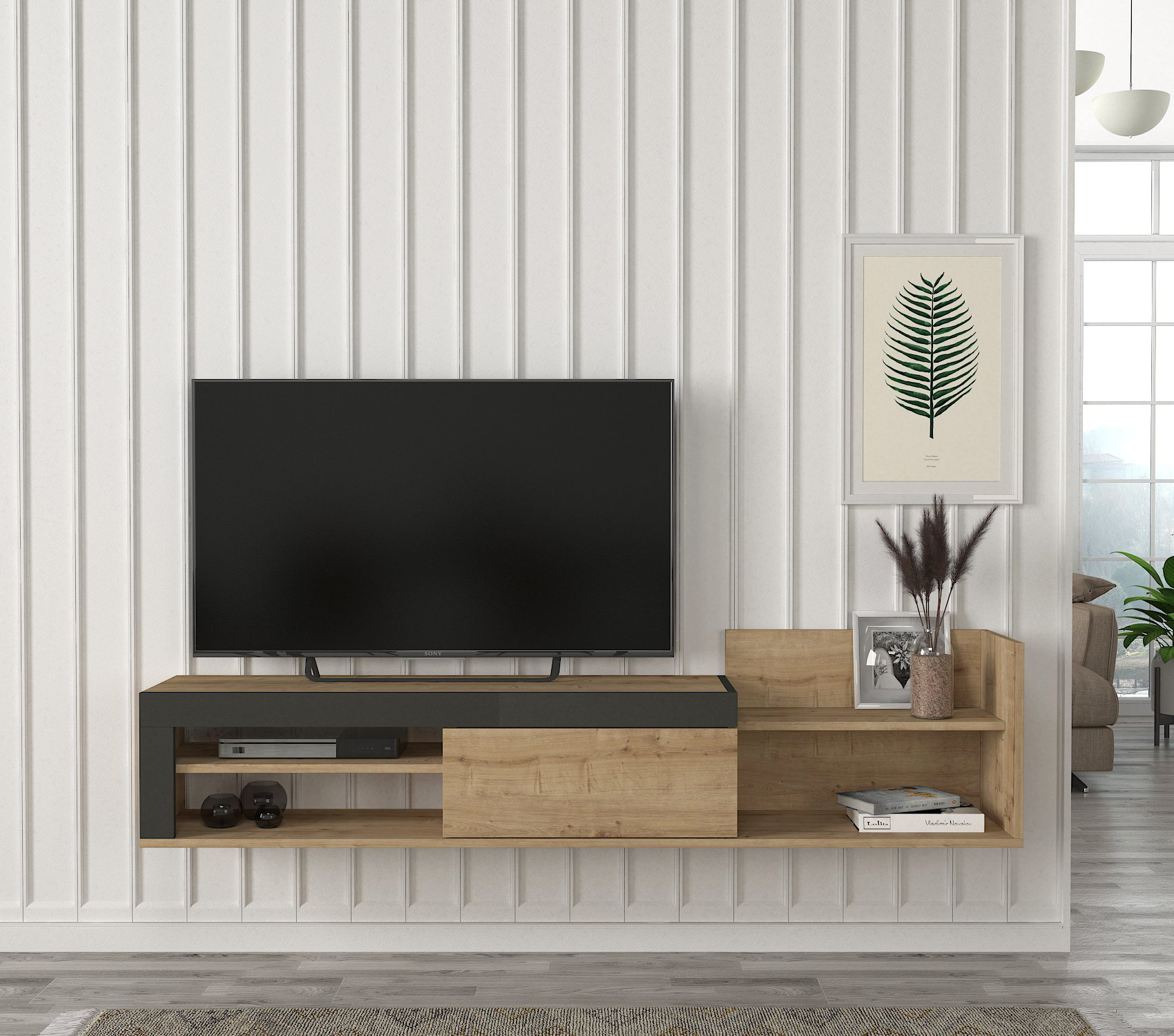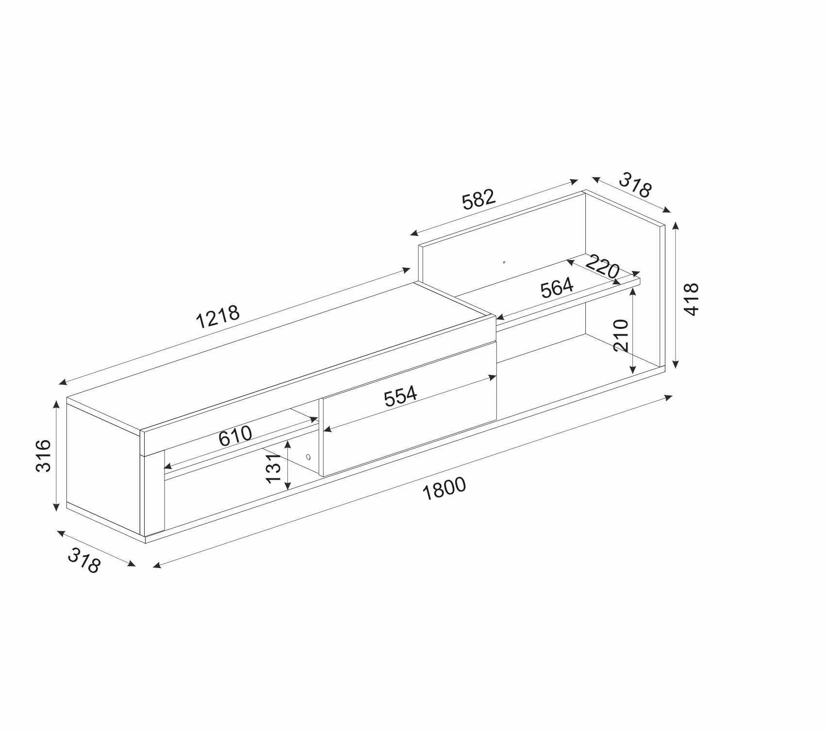 המזנון הינו מזנון צף הממוקם מתחת לטלוויזיה ובעל מקום אחסון רב!