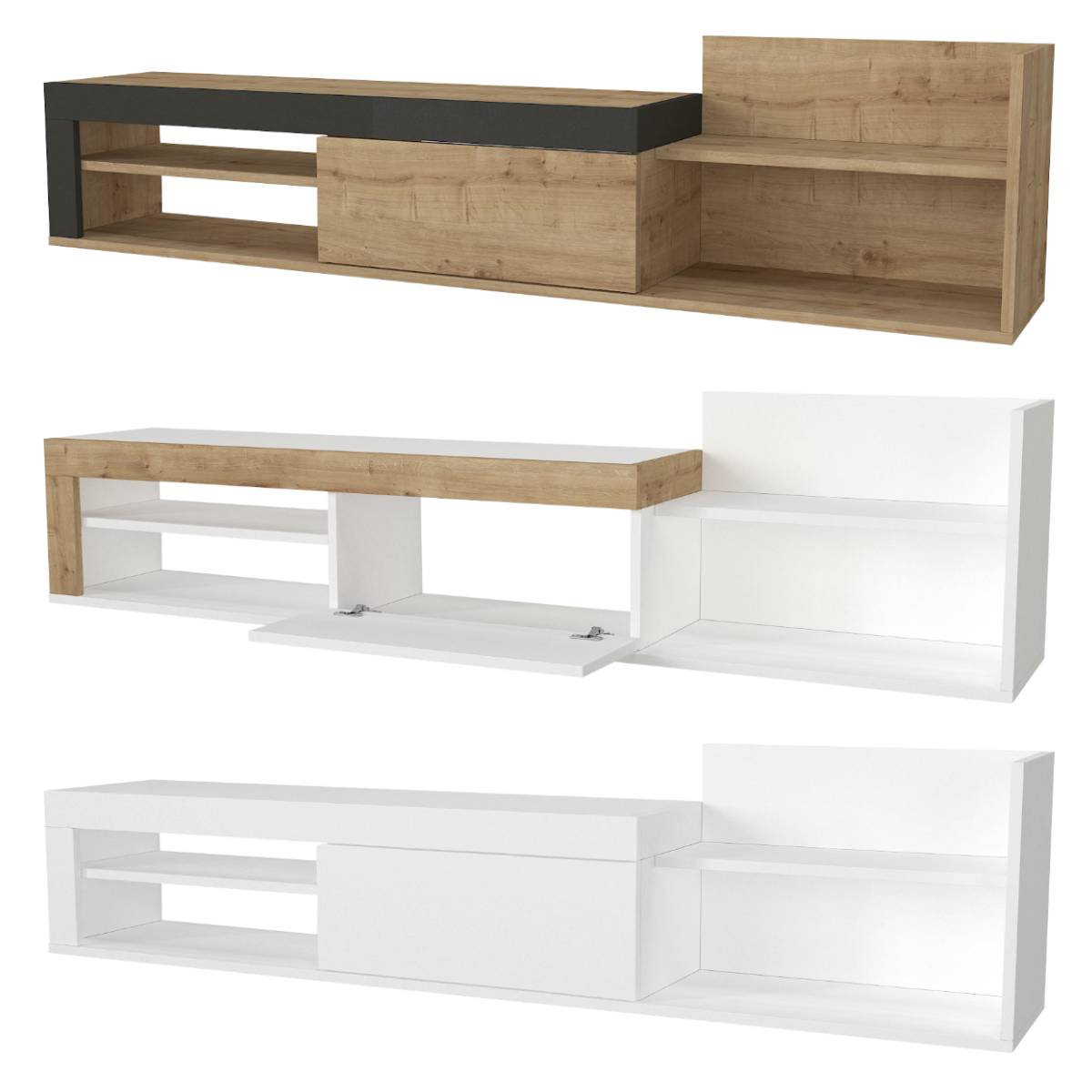 צבע המזנון לבחירה: אפור פחם משולב חום אלון / לבן משולב חום אלון / לבן