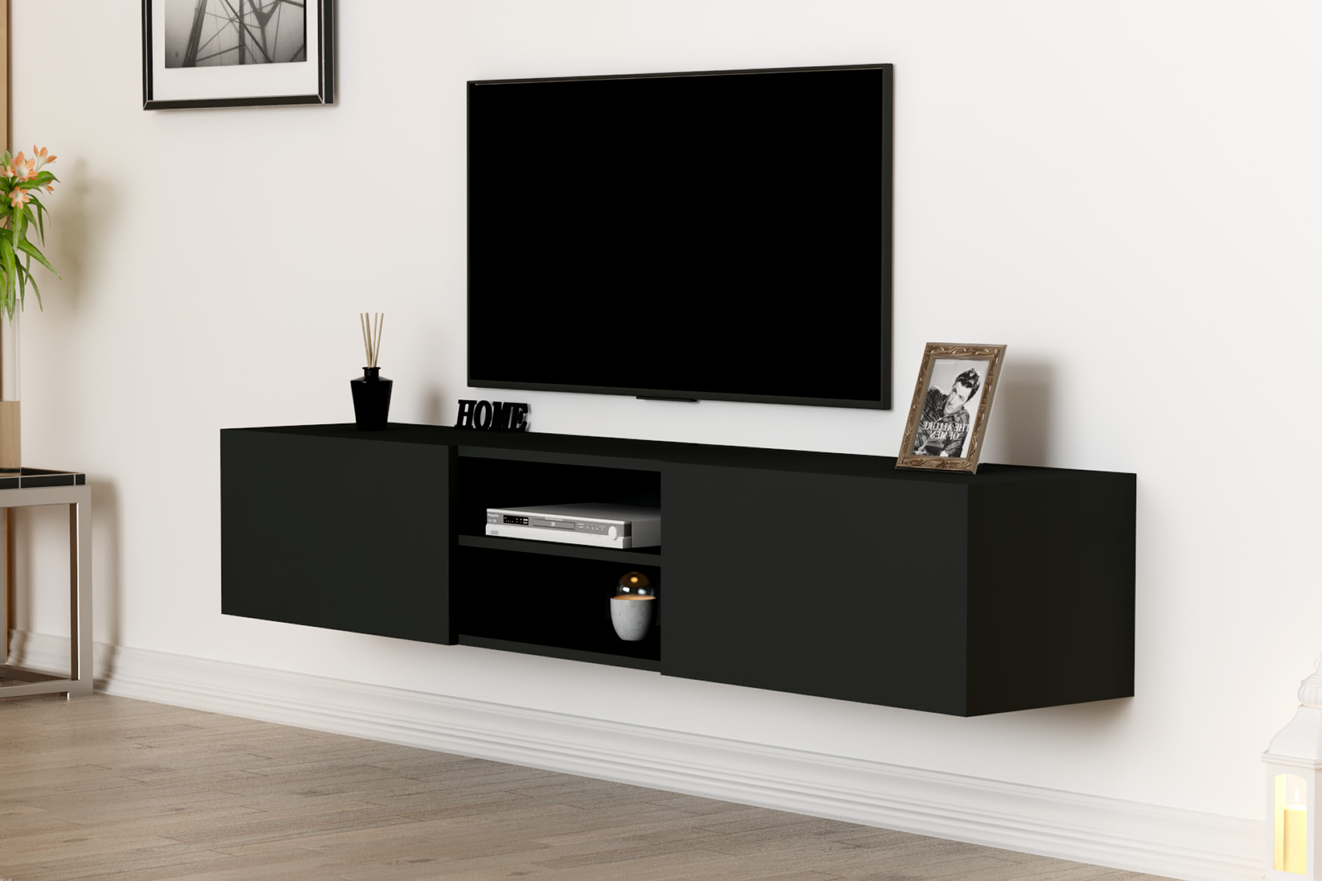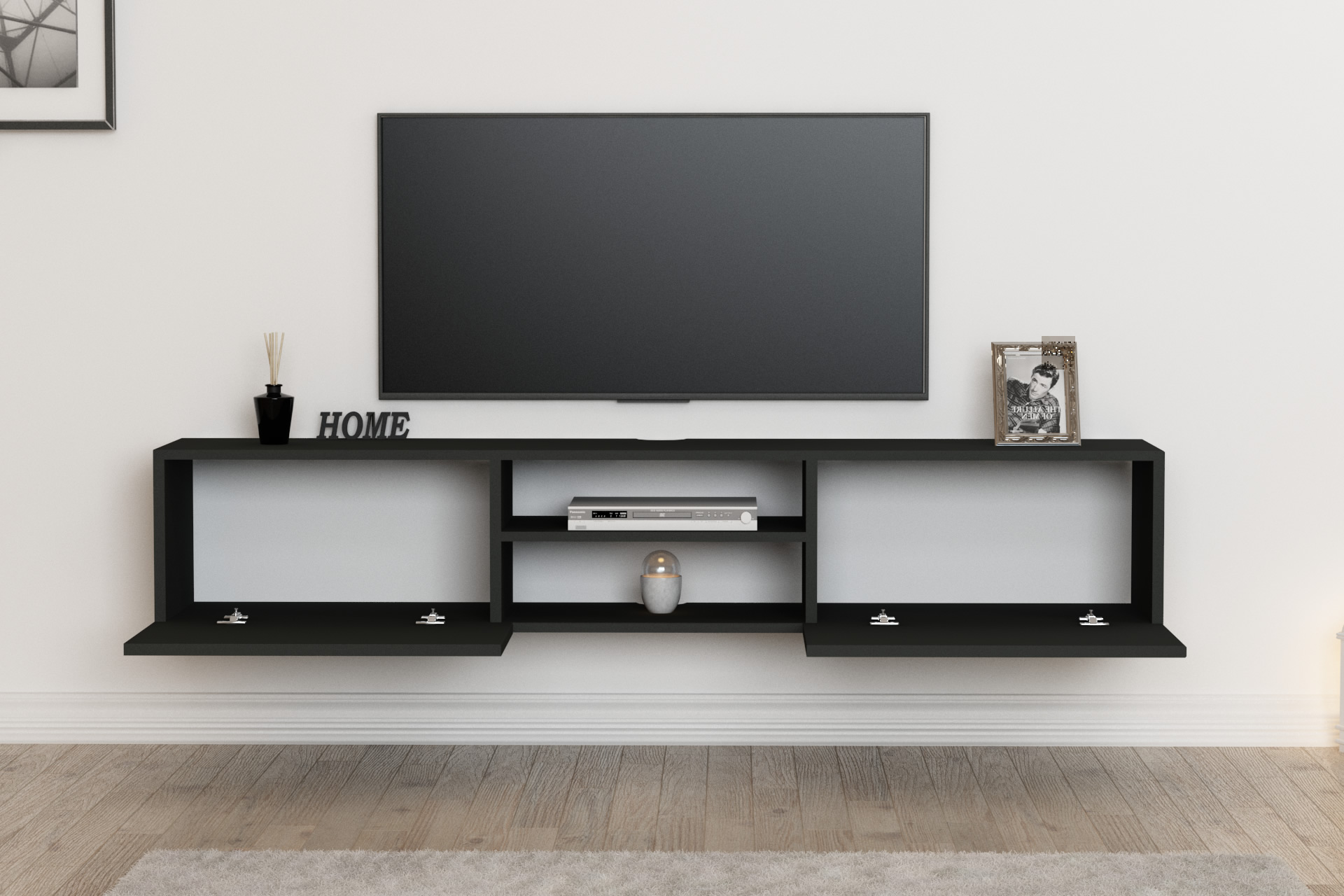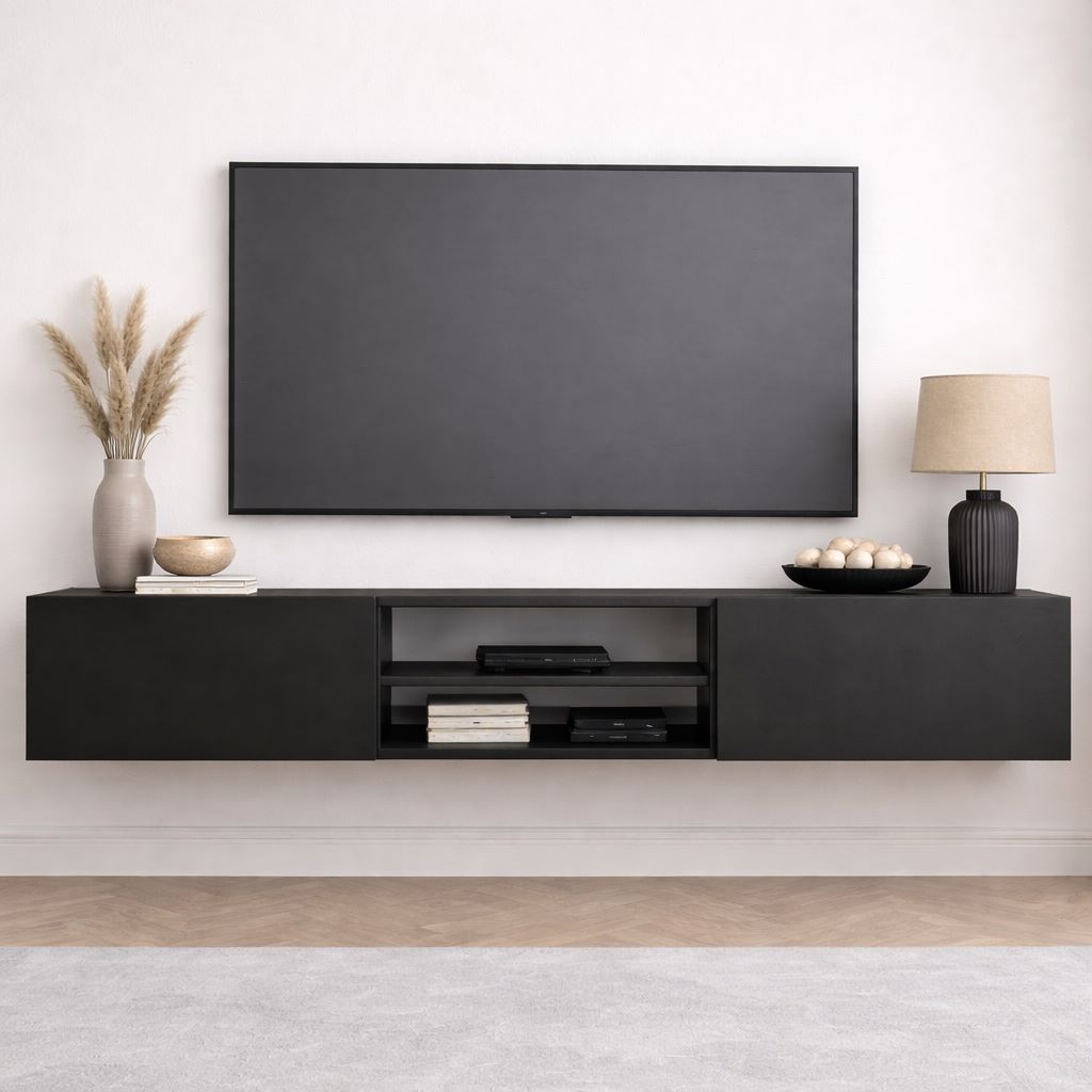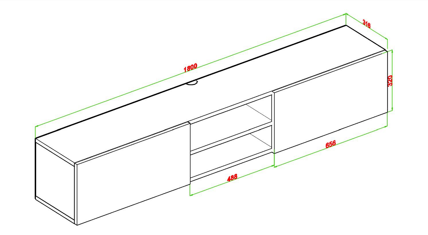 מזנון צף מיועד לתליה ברוחב 180 ס"מ, כולל חלל אמצעי פתוח ו- 2 קלאפות נפתחות לחלל אחסון סגור, בחלקו האחורי של המזנון ישנו מקום להעברת כבלים למוצרי החשמל השונים.