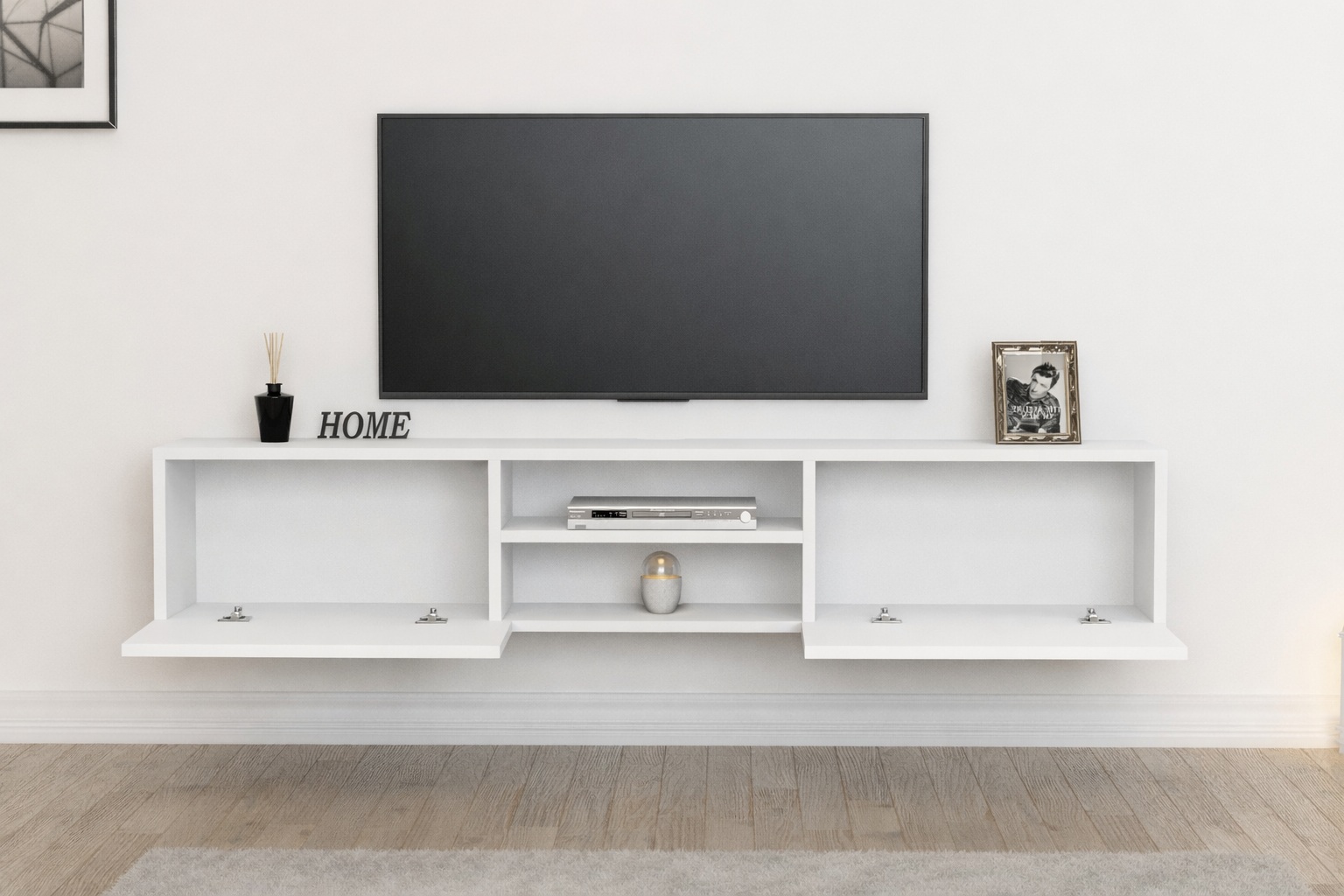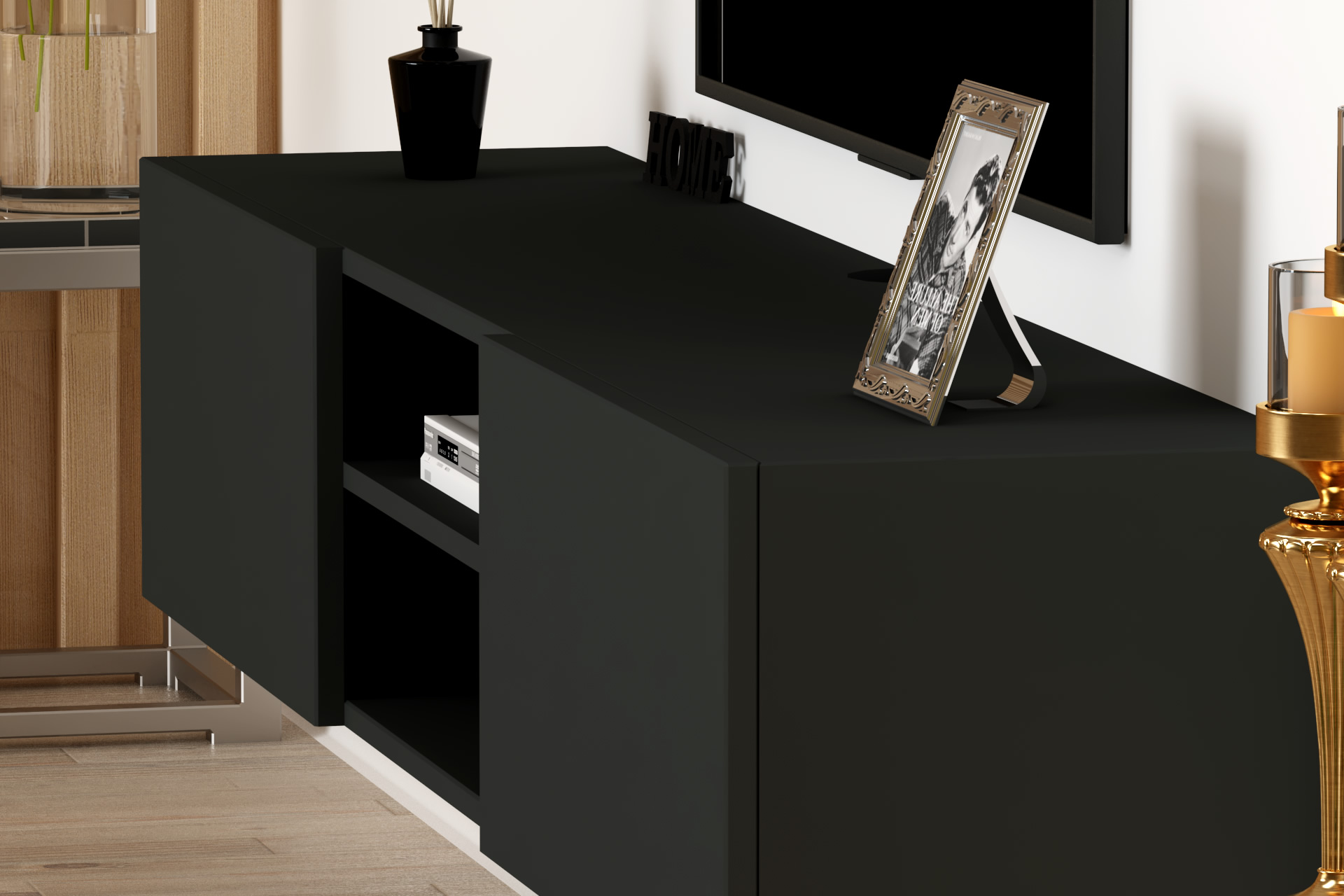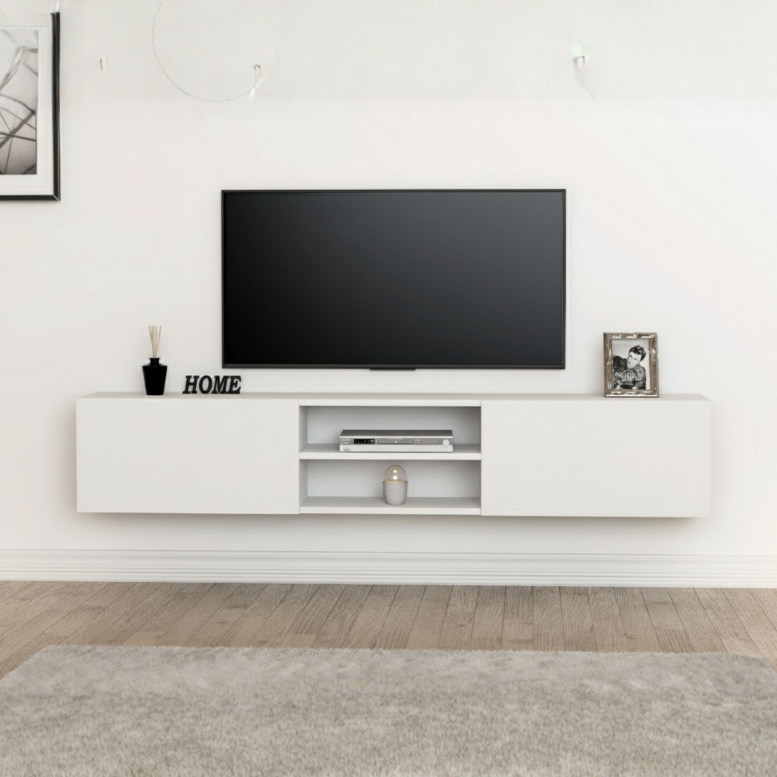 מזנון צף מיועד לתליה ברוחב 180 ס"מ, כולל חלל אמצעי פתוח ו- 2 קלאפות נפתחות לחלל אחסון סגור, בחלקו האחורי של המזנון ישנו מקום להעברת כבלים למוצרי החשמל השונים.