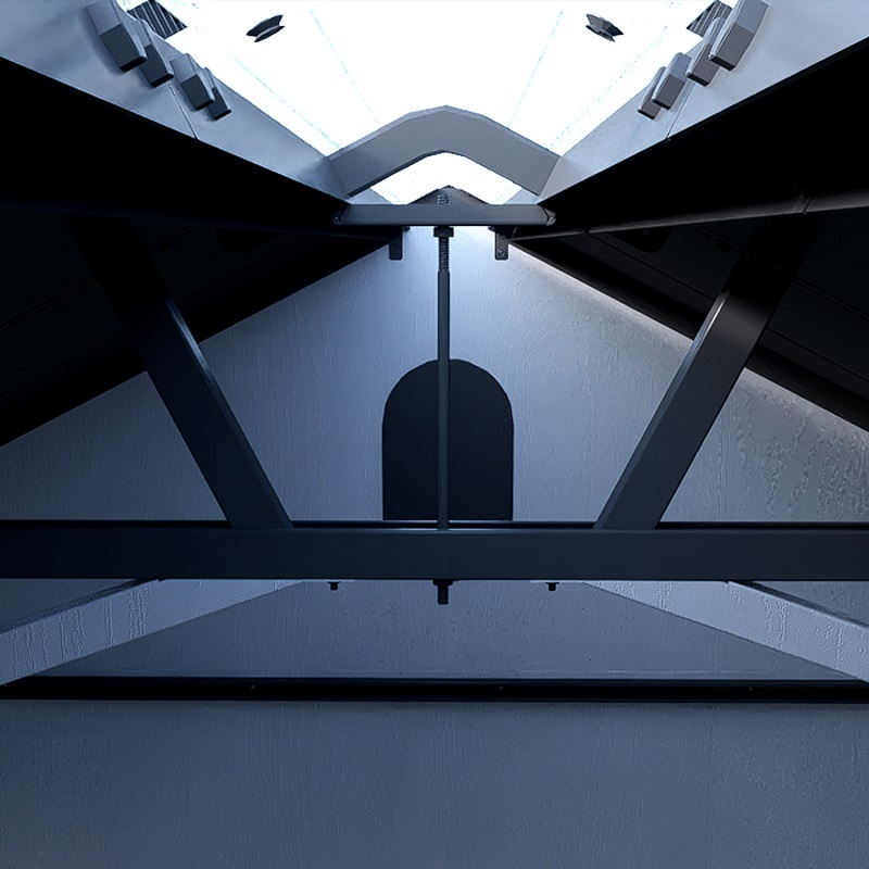 פס עליון של תאורה טבעית – גג סקיילייט המאפשר כניסת אור טבעי למחסן בשעות היום