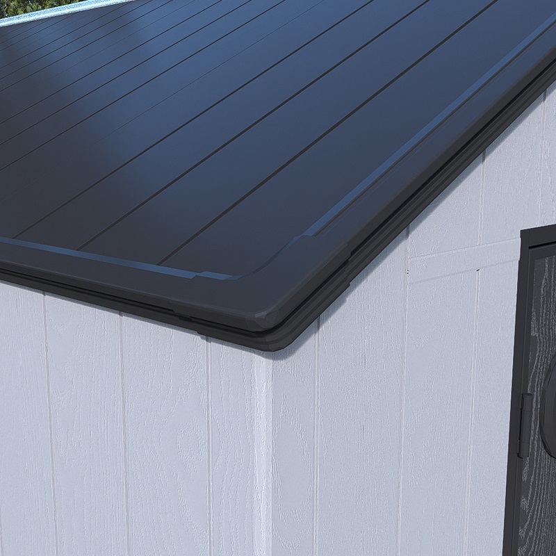 מחסן חדשני ואיכותי לגינה WATERPROOF אטום למים לשמירה על החפצים, עשוי פלסטיק ידידותי לסביבה, בעל פס עליון של תאורה טבעית – גג סקיילייט המאפשר כניסת אור טבעי למחסן בשעות היום וכולל רצפה חזקה לאחסון מוצרים כבדים.