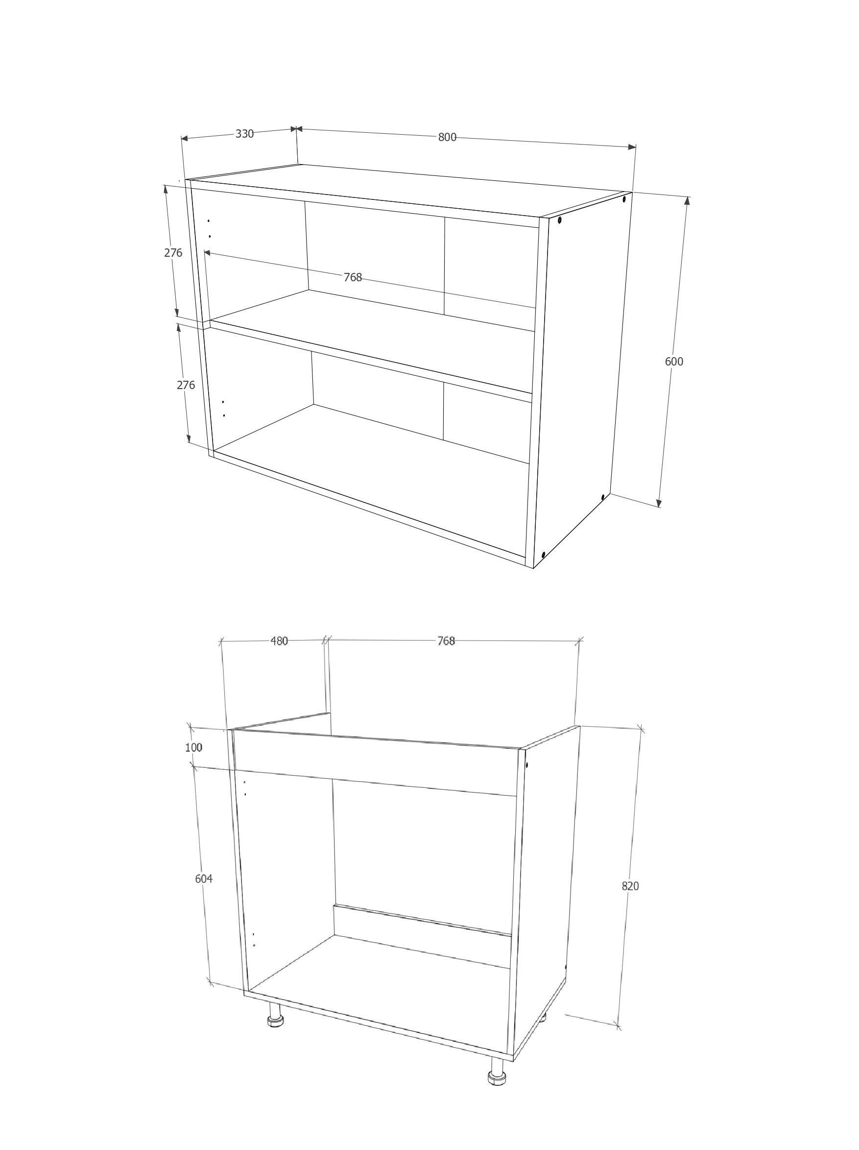 מידות ארונות תחתונים: רוחב 80 ס"מ, גובה 82 ס"מ, עומק 50 ס"מ