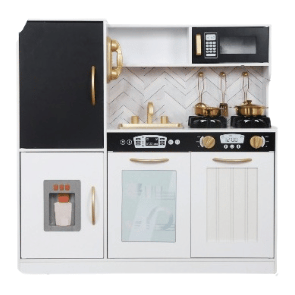 מטבח עץ MDF אלקטרוני לילדים בגוון שמנת שחור, כולל אביזרים נלווים למשחק דמיון עשיר. מתאים לפעוטות וילדים, מעודד משחק תפקידים, פיתוח יצירתיות וקואורדינציה. יציב, איכותי ומעוצב לחדרי ילדים ומשחקיות.