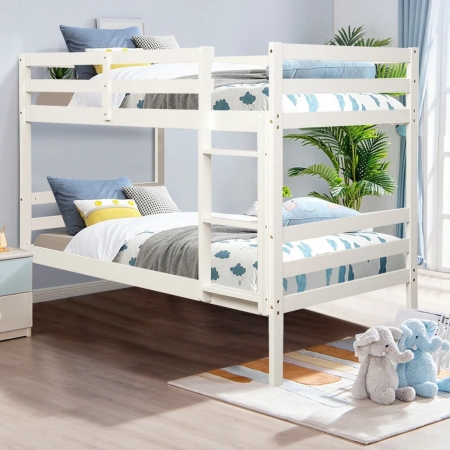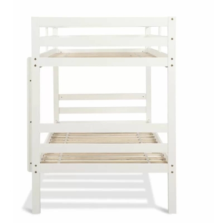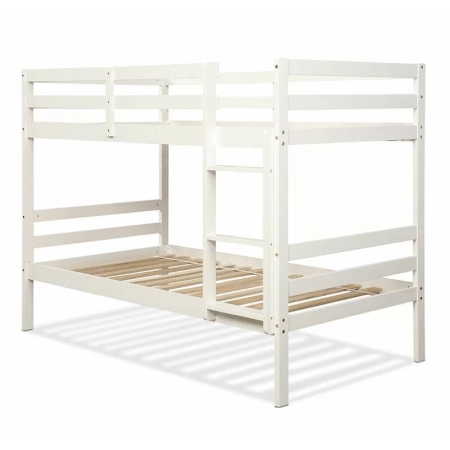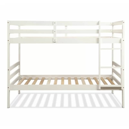 מיטת קומותיים לילדים ולנוער דגם RICARDO – שילוב מנצח של עיצוב נקי, יציבות ובטיחות, עשויה 100% עץ אורן מלא בגימור לבן מרהיב.