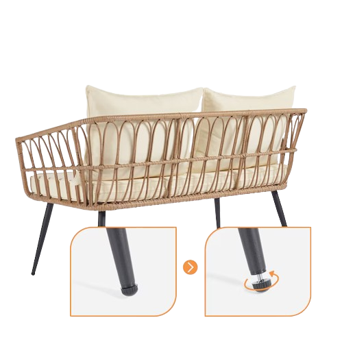 מערכת ישיבה יוקרתית בעיצוב מודרני משילדת אלומיניום בשילוב קש איכותי, עם כריות עבות במיוחד וריפודים נשלפים. אידיאלית לגינה, למרפסת או לחצר לאירוח נוח ומרשים.