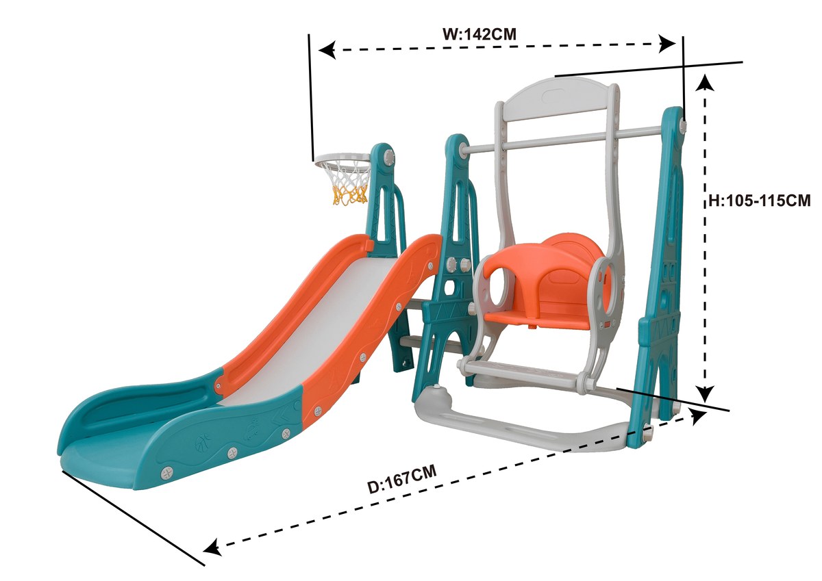 כולל מגלשה, נדנדה בטיחותית וסל כדורסל לפעילות מגוונת.