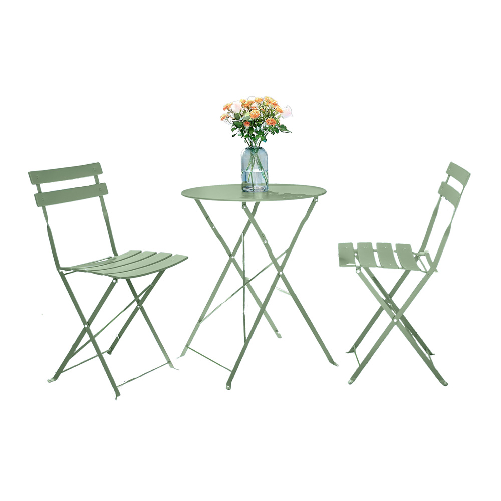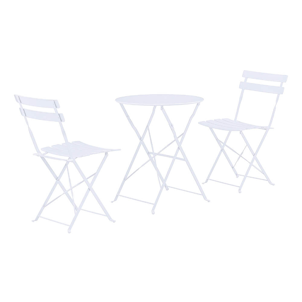 סט ביסטרו זוגי הכולל, שולחן עגול וזוג כסאות תואמים, הסט מתקפל בקלות ונוח לאחסון, מיועד לישיבה נינוחה במרפסת או בגינה.