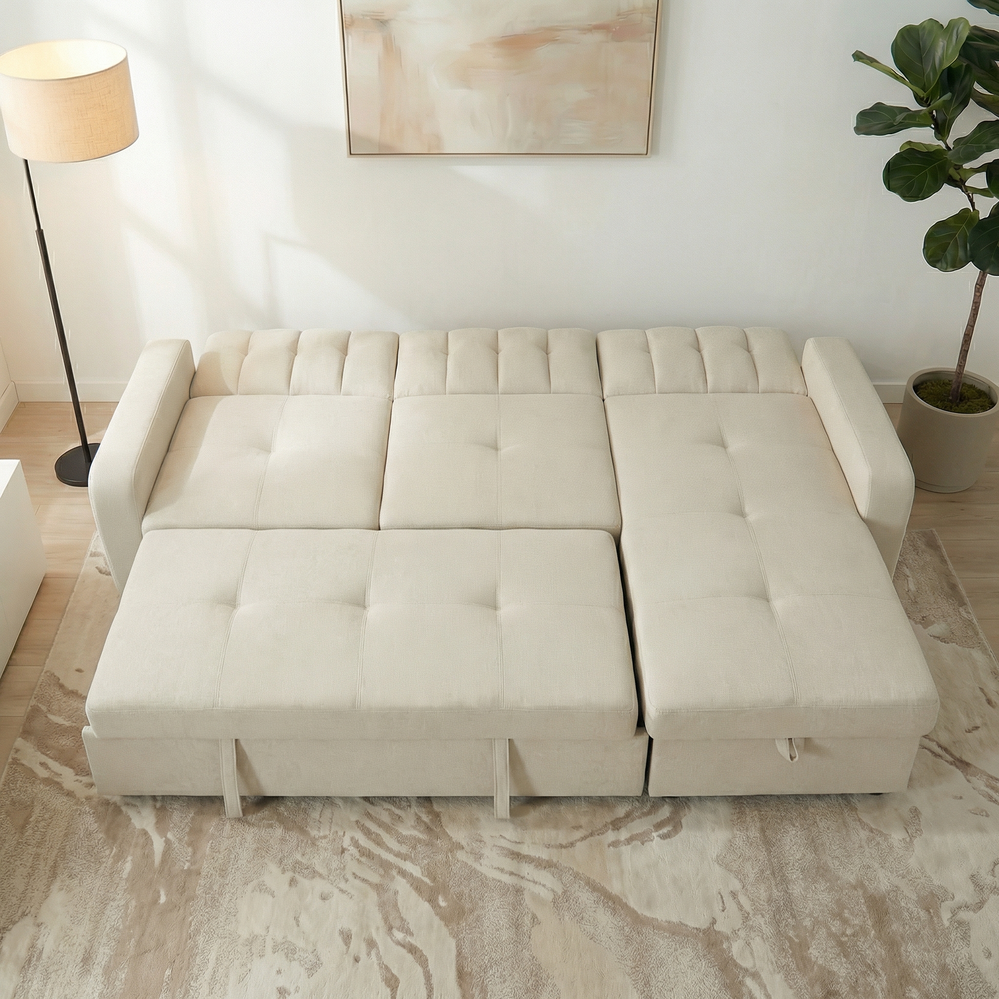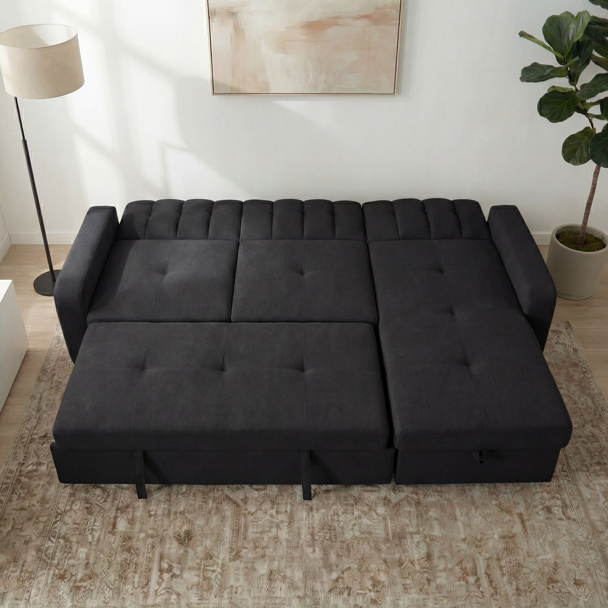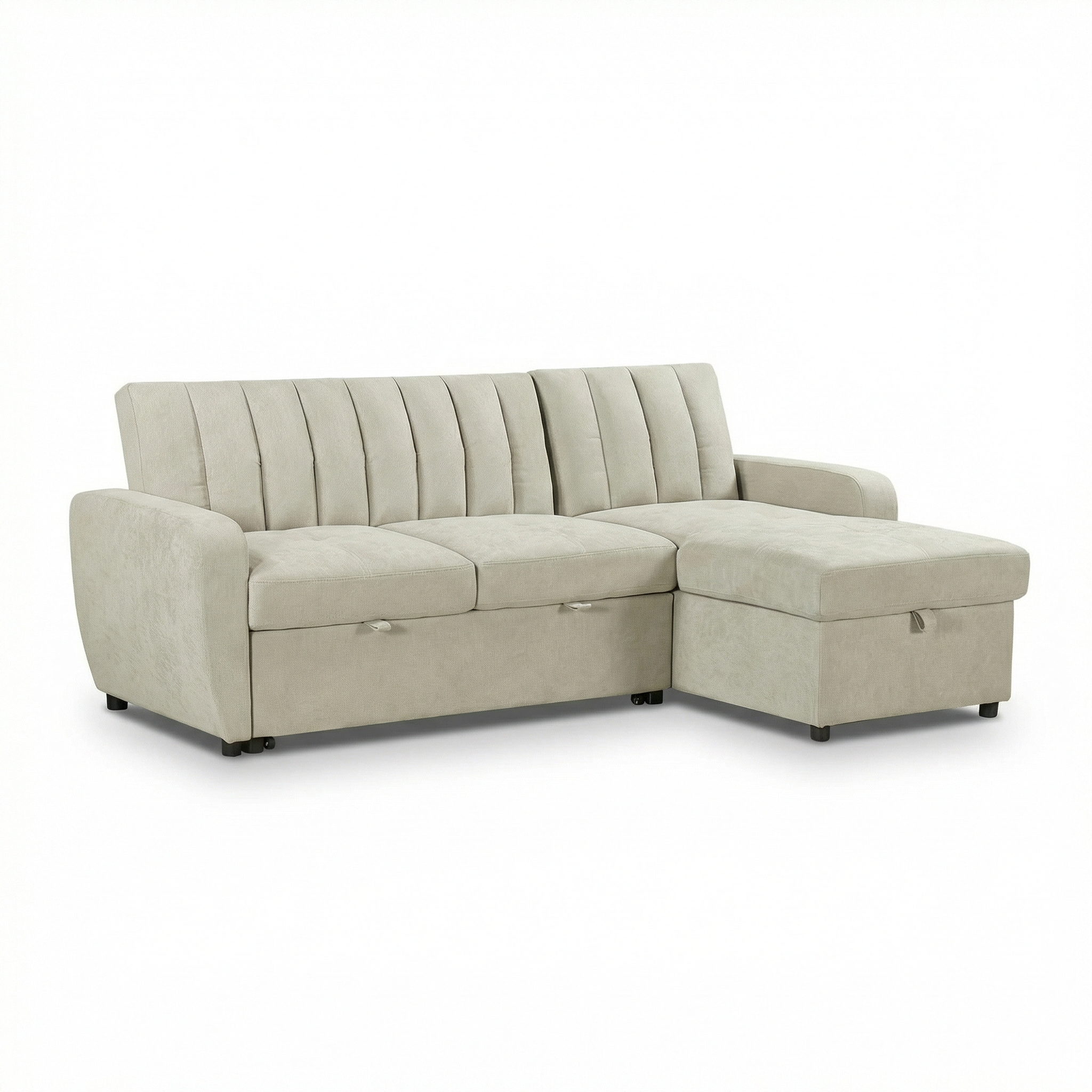 מערכת ישיבה פינתית בעלת ארגז מצעים מובנה מרווח וקל לפתיחה, ממוקם ביחידת השזלונג, נפתחת בקלות למיטה זוגית במידה ברוטו 190×170 ס"מ, במושבי הספה קפיצים מבודדים ("קפיצי כיס"), מקנים ישיבה נוחה במיוחד.