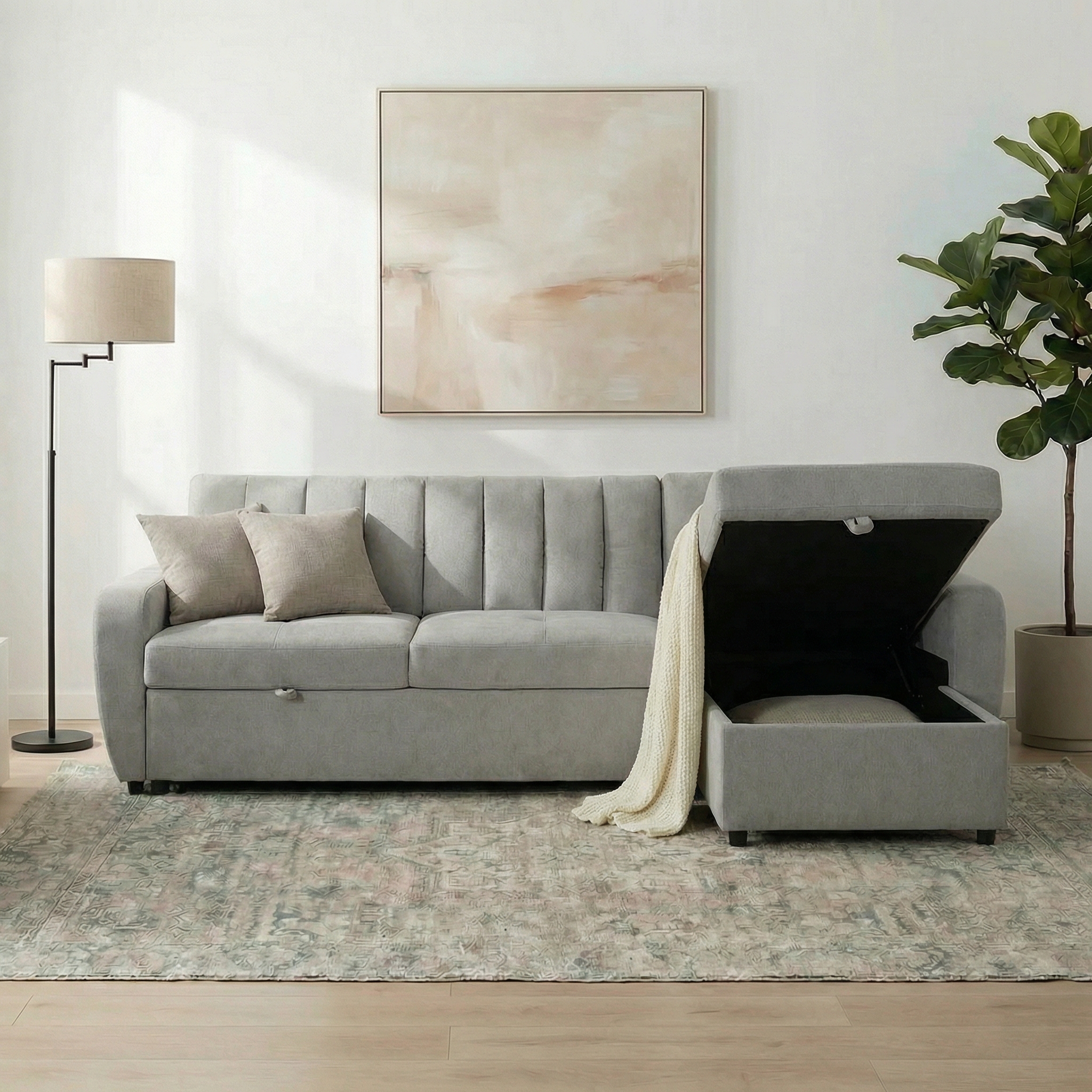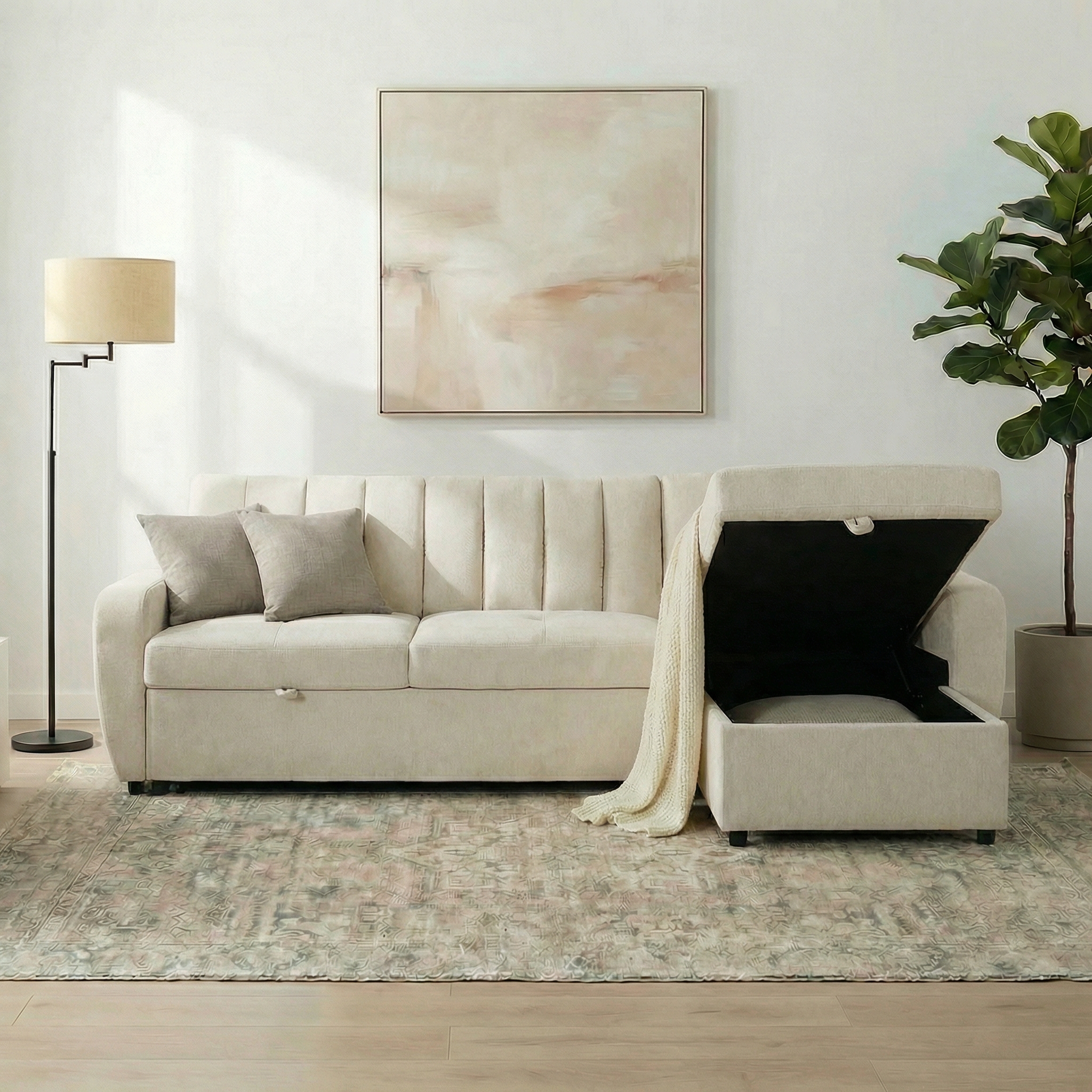ספה פינתית נפתחת למיטה זוגית עם ארגז מצעים דגם יונית מבית HOME DECOR
