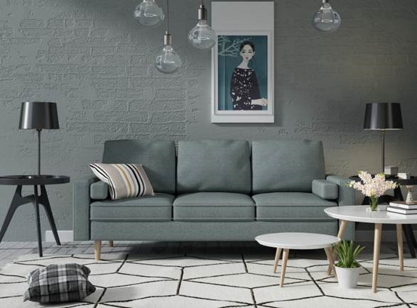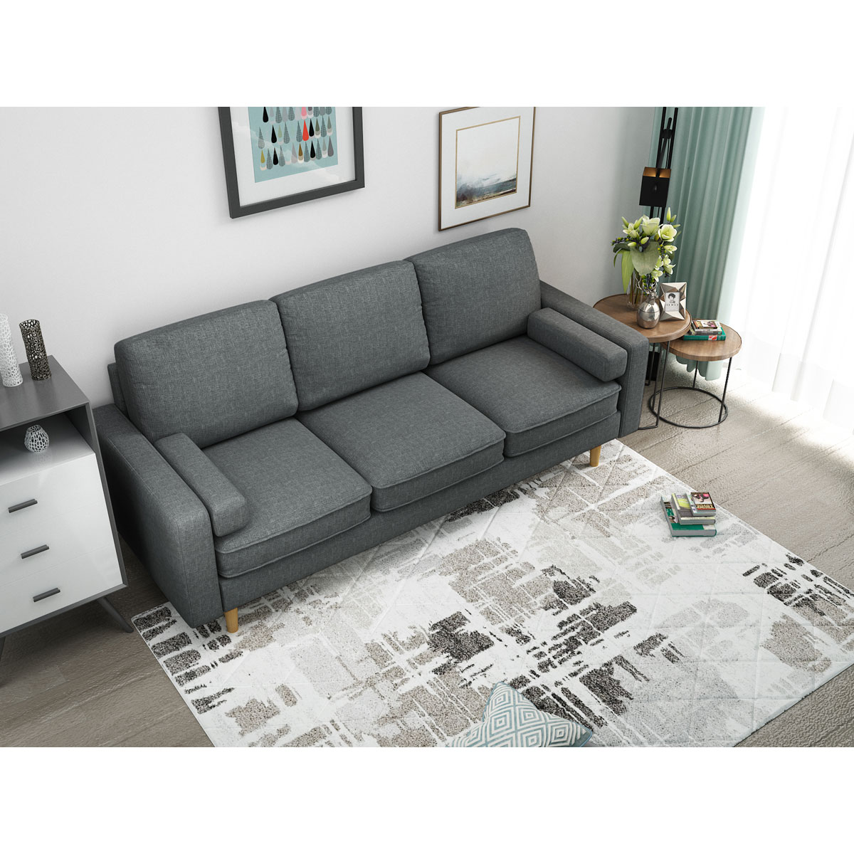 ספה תלת מושבית מרופדת בד עיצוב קלאסי.