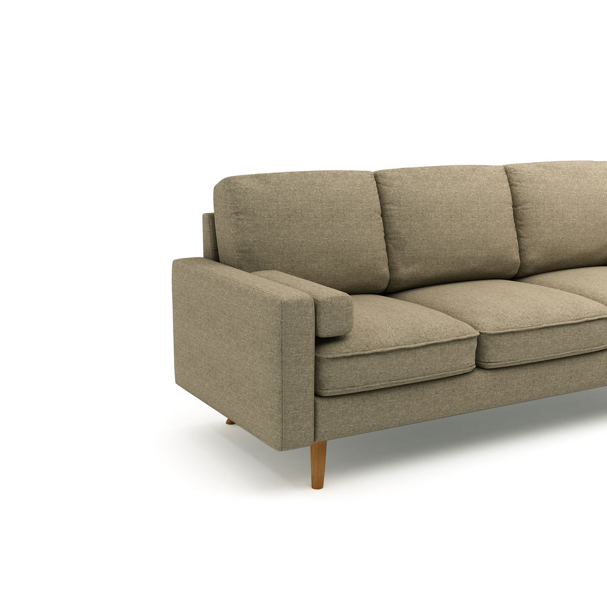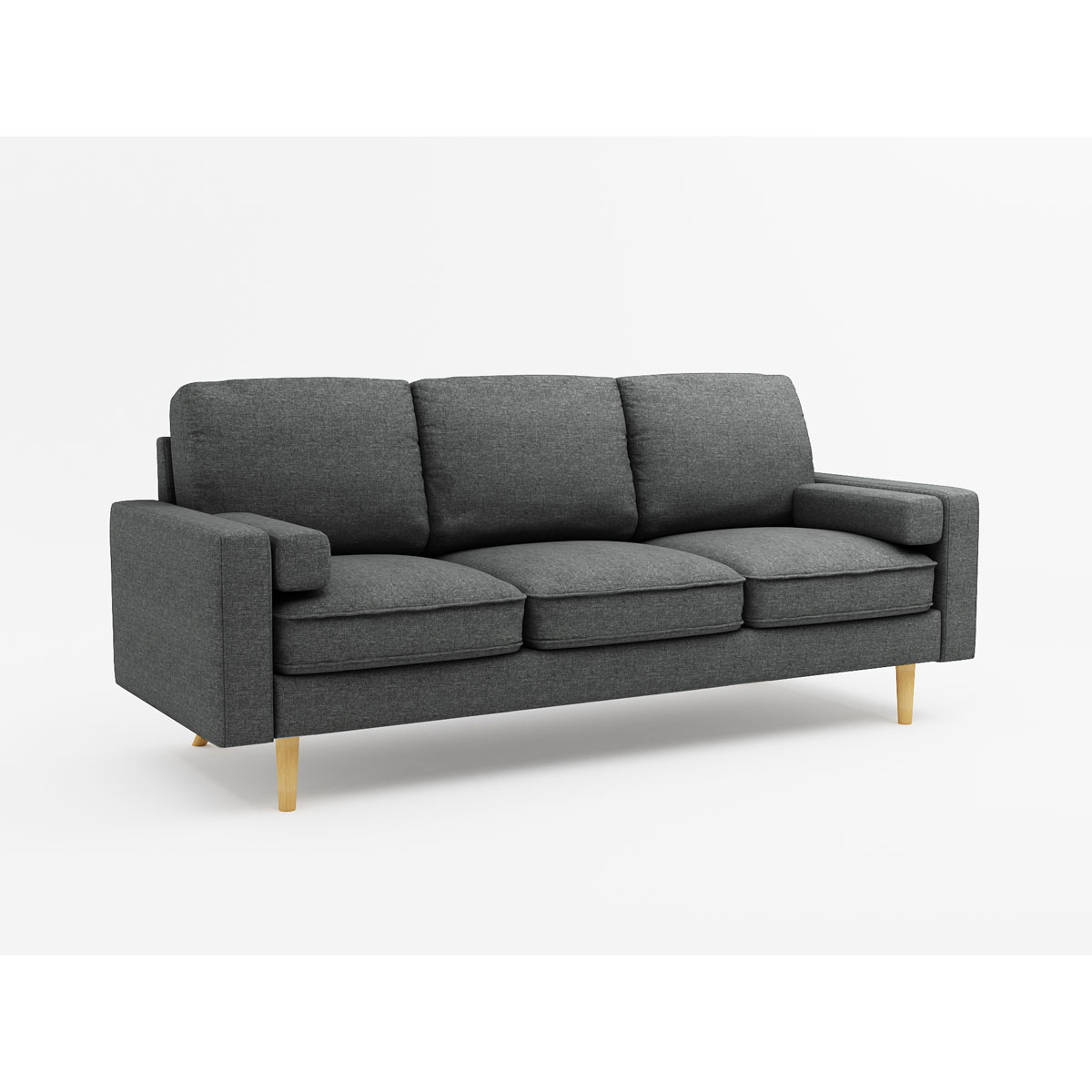 ספה תלת מושבית קלאסית מעוצבת וחזקה, מרופדת בד פוליאסטר נעים למגע, מושבים וכריות גב נשלפות.