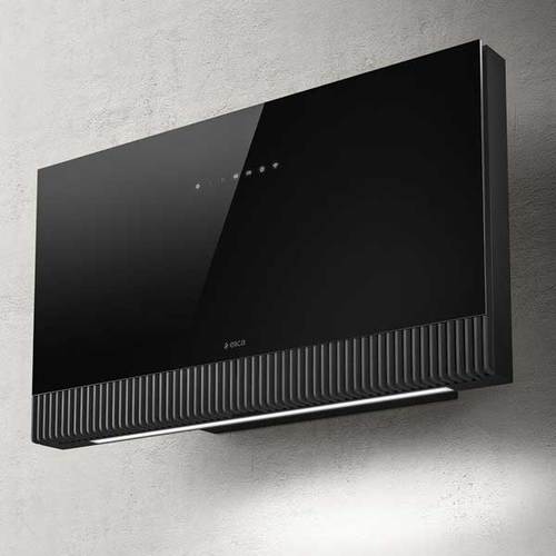 קולט אדים צמוד קיר יוקרתי, רוחב 80 ס”מ, בעל גימור זכוכית שחורה, גרסאות סחרור פנימי/חיצוני לפי בחירה, בקרי מגע, תאורת STRIP LED 1X7W ועוצמת יניקה מקסימלית עד 900 מק"ש.