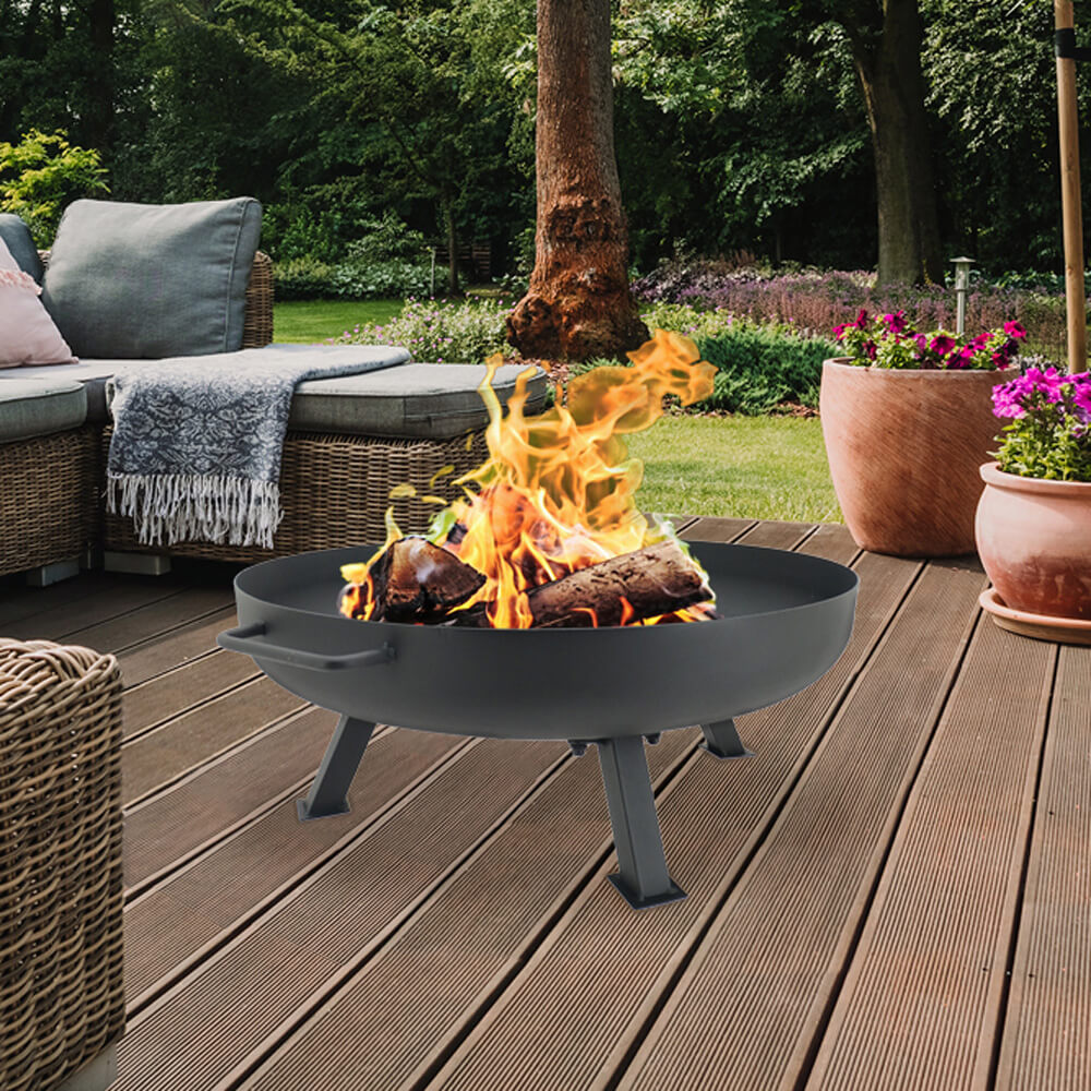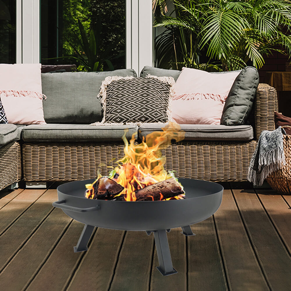 קערת מדורה עשויה מתכת המוצבת על רגליים, קערת המדורה מאפשרת ליהנות מחום האש, מיופי הלהבות מבלי ללכלך את הרצפה בגינה או במרפסת.