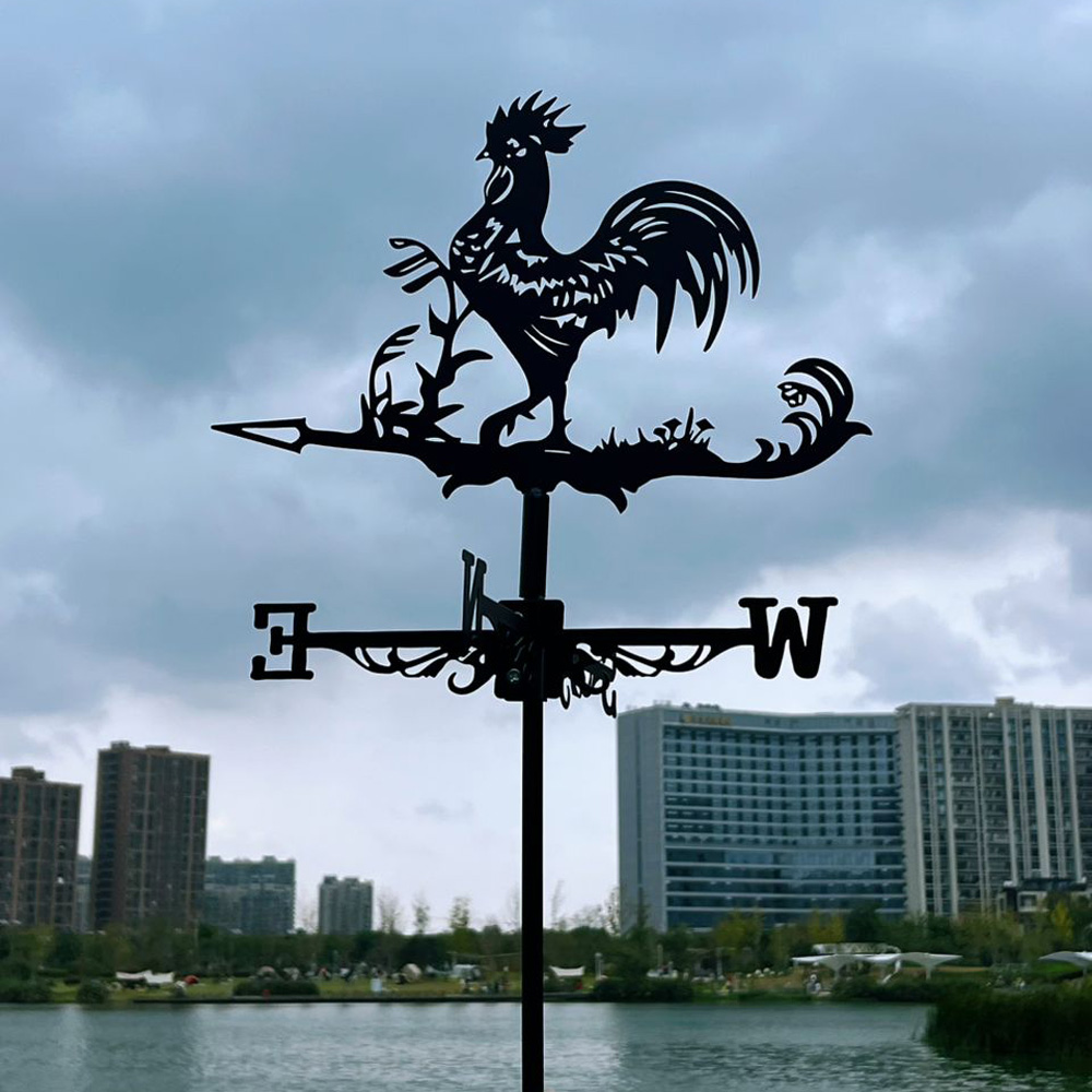 שבשבת רוחות דקורטיבית ממתכת איכותית בעיצוב תרנגול, משלבת יופי ופונקציונליות לגינה או לקיר החיצוני. עמידה לכל מזג אוויר, מסתובבת עם כיוון הרוח וכוללת קיבוע מלא.