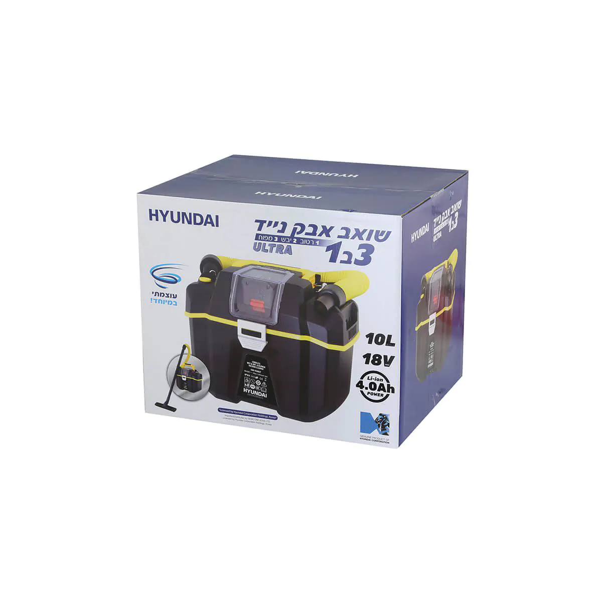 שואב אבק רטוב/יבש/מפוח נייד נטען עם סוללה 4AH דגם HAV-9300UT מבית Hyundai