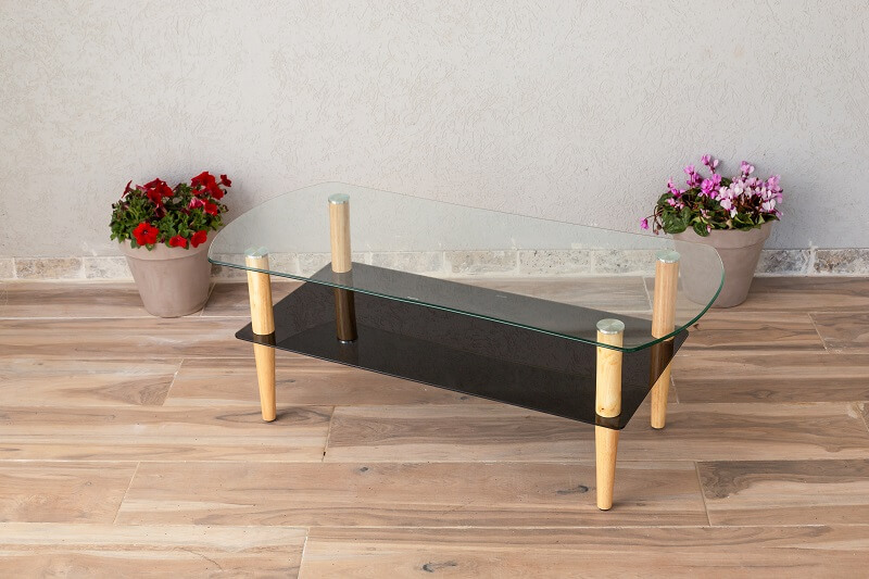 שולחן סלון דגם אתונה עשוי משילוב נפלא של זכוכית ועץ במבוק