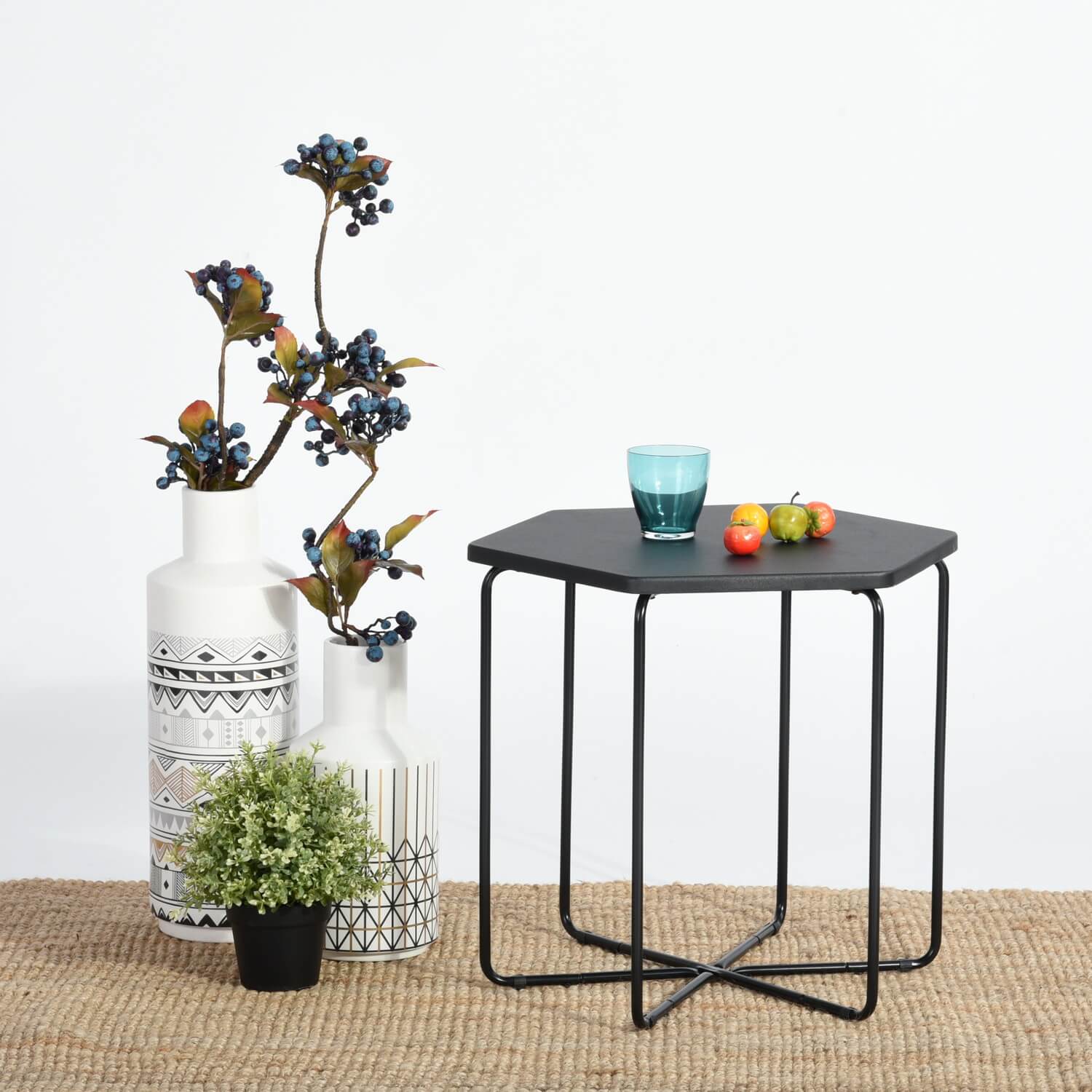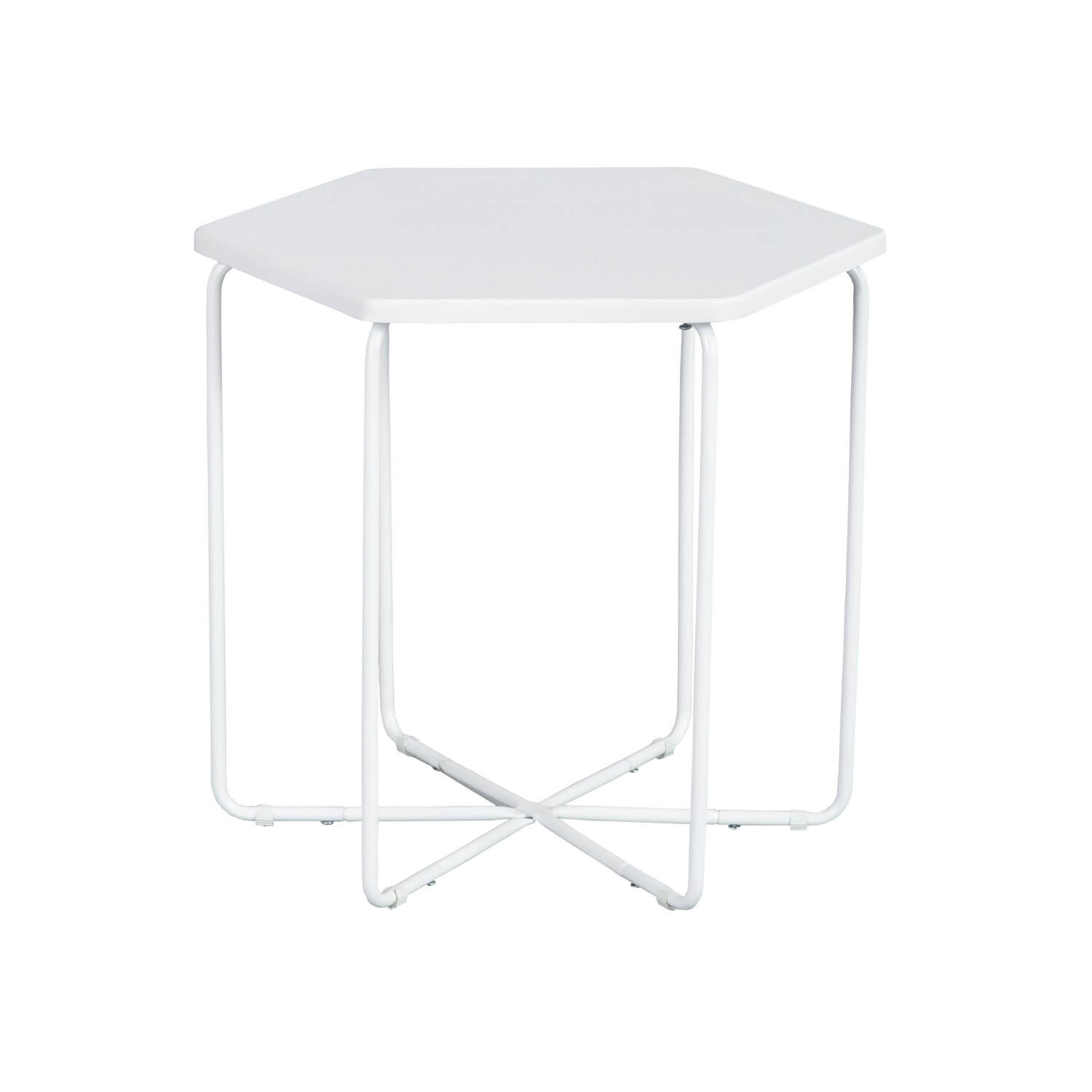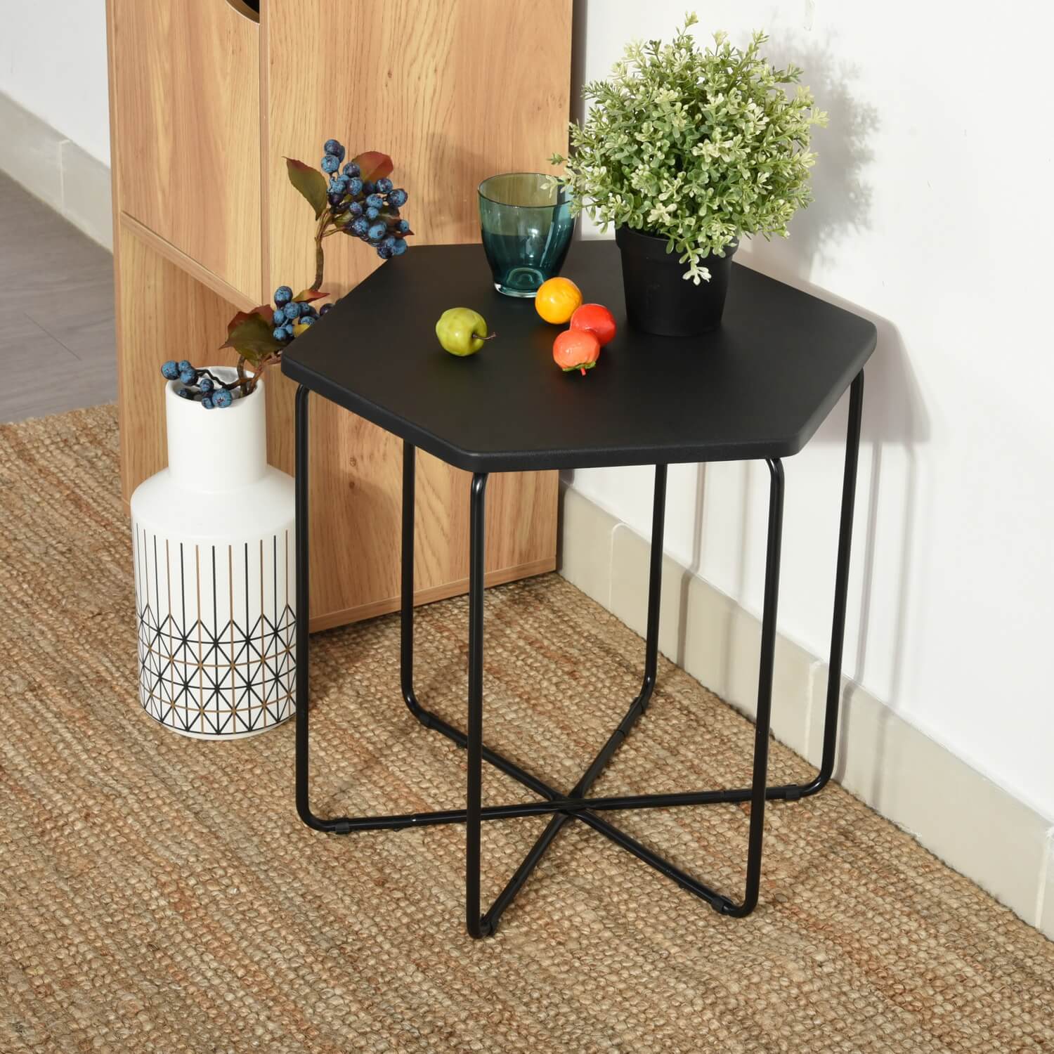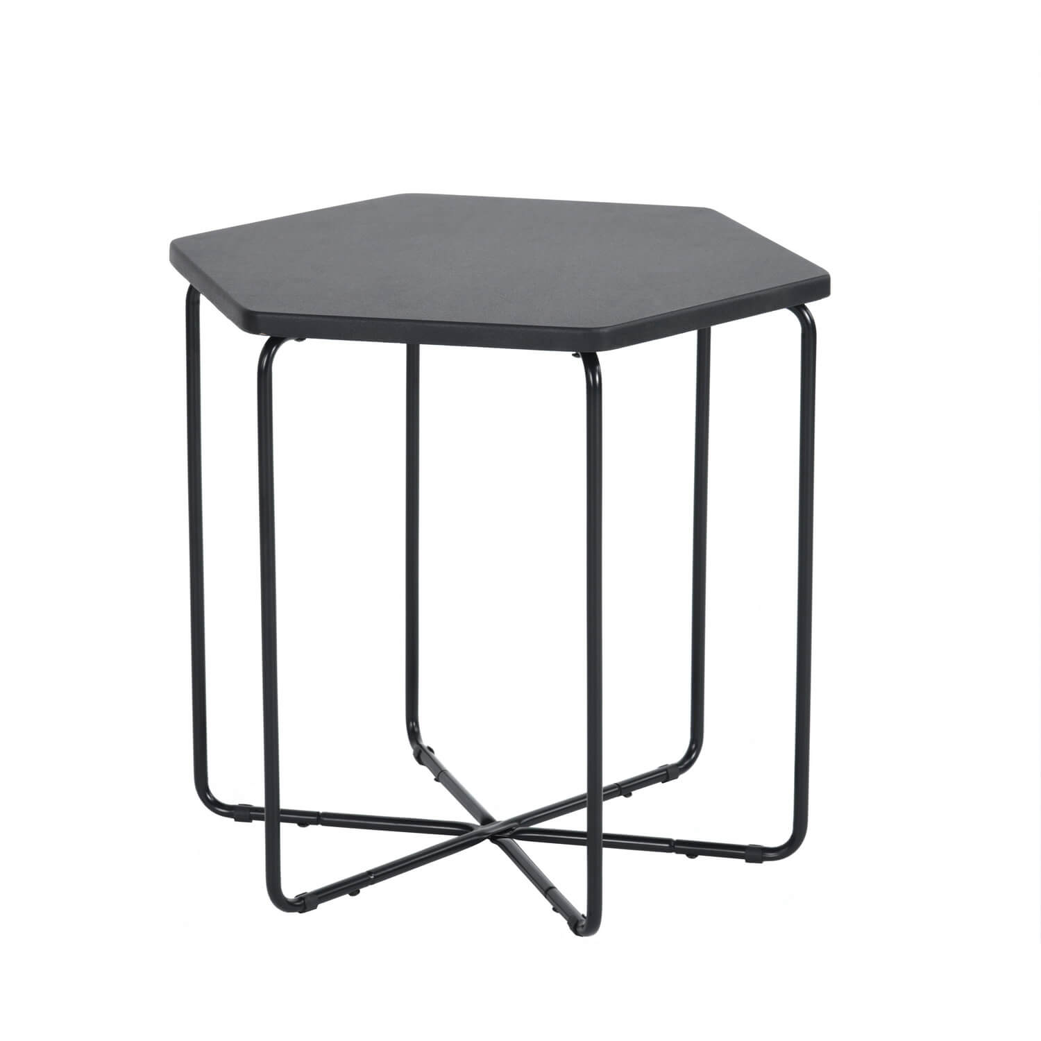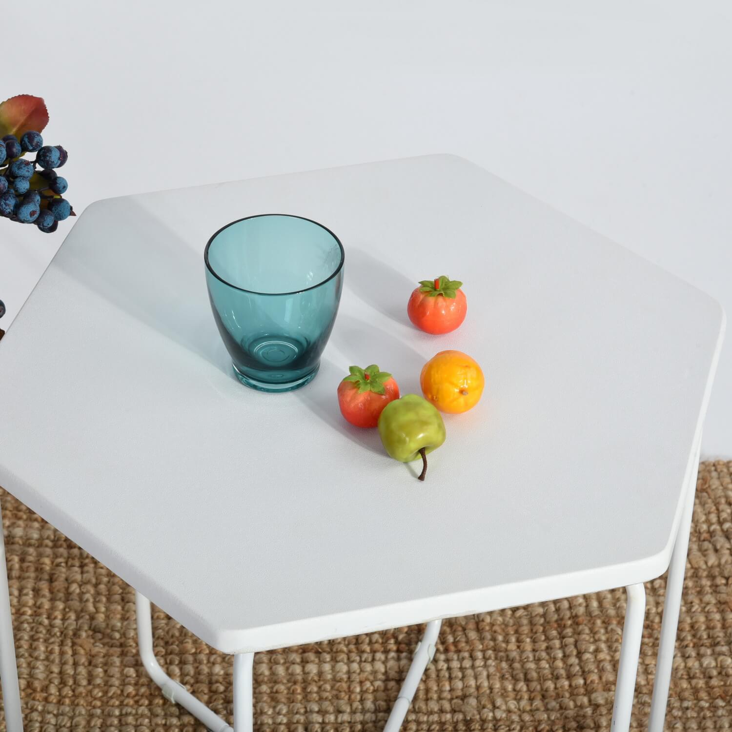 שלחן צד בעיצוב חדשני בצורת משושה העשוי עץ, מושלם לסלון, לחדר הטלוויזיה, לגינה או למשרד.