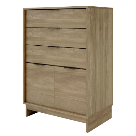 שידת אחסון OPAL מעוצבת ורב-תכליתית, הכוללת 3 מגירות עמוקות ו-2 דלתות עם מדף פנימי לארגון מושלם. עשויה סיבית איכותית בציפוי מלמין עמיד, מתאימה לסלון, לחדר שינה או למשרד ומציעה פתרון אחסון פונקציונלי בעיצוב נקי ומודרני.