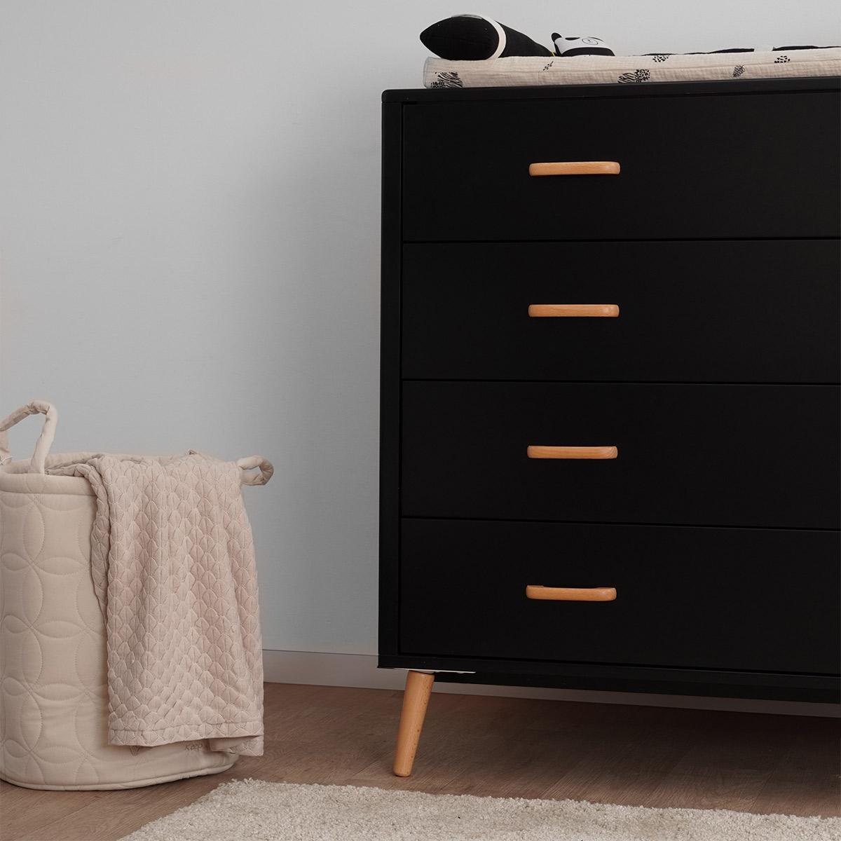 לשידה רגלי עץ זוויתיות המגביהות את השידה ומעניקות לה מראה קליל ואוורירי