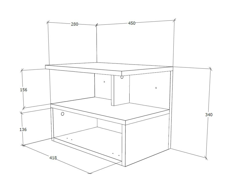 שידת לילה תלויה מעוצבת בגוון אלון טבעי, אידיאלית לחדרי שינה מודרניים וחללים נקיים. מתאימה לצד מיטה זוגית או יחיד, עם פתרון אחסון חכם הכולל דלת קלפה ותאים פתוחים לשליפה מהירה. עיצוב מינימליסטי שמייצר תחושת מרחב ומראה מרחף ואלגנטי על הקיר.