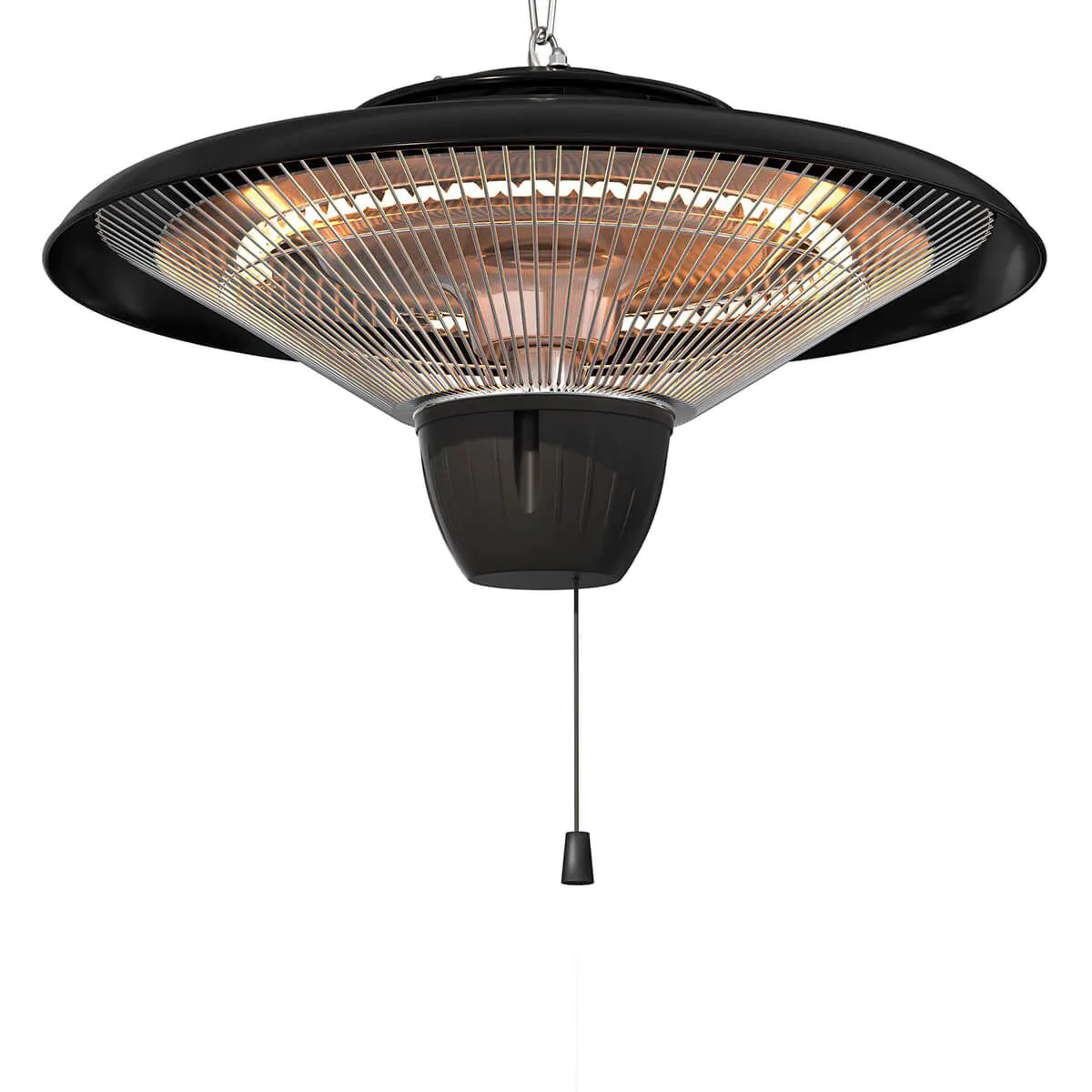 תנור חימום פטריה תלוי מבית ECO EURO בעוצמה של 1500W, מתאים לשימוש ביתי או מסחרי – גינות, מסעדות ובתי קפה. כולל גוף חימום סיבי פחמן, דרגת אטימות IP34 והפעלה נוחה במשיכת חוט.